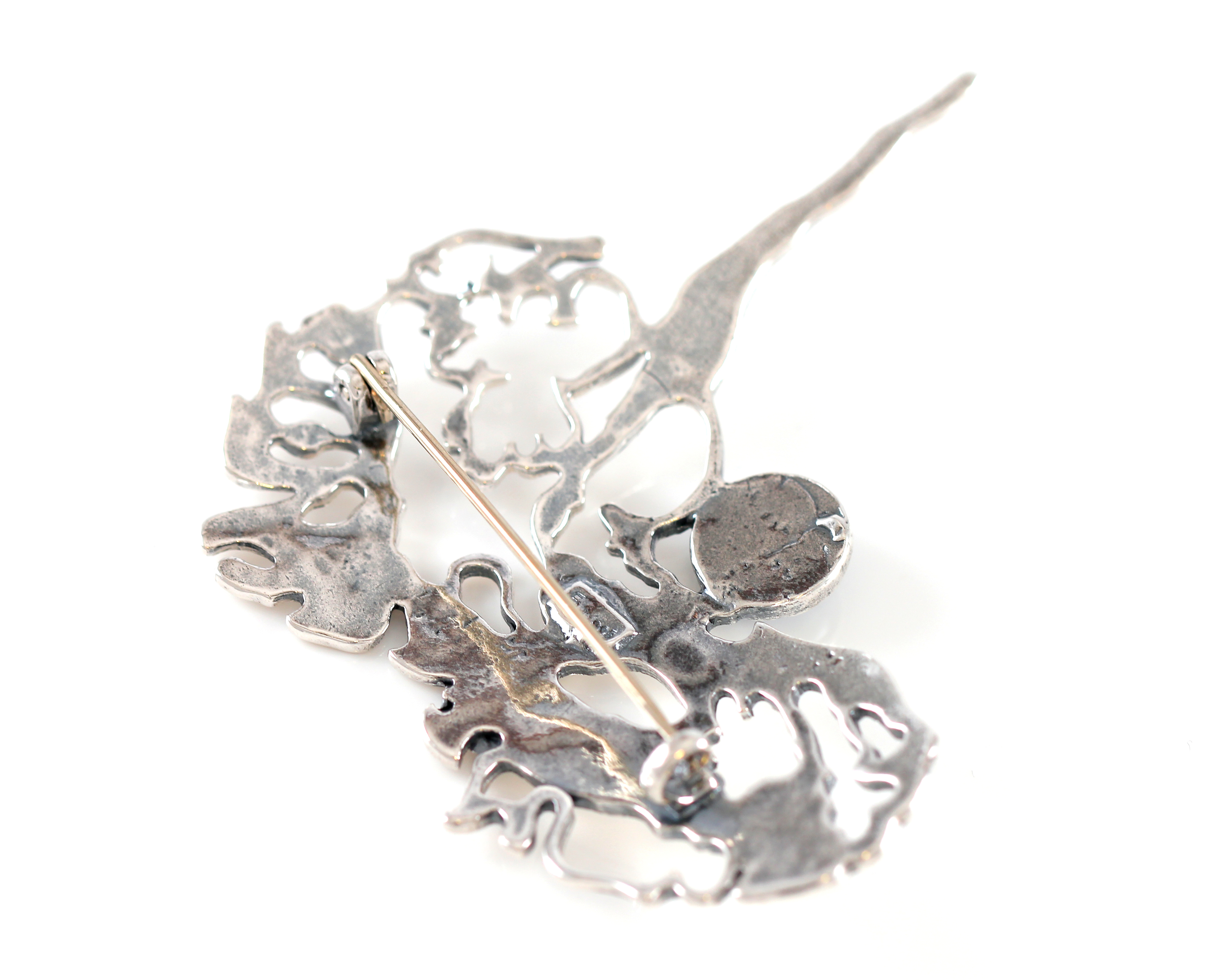 Stor brosje med stein, produsert av Eivind Hillestad. 6,6 x 7,0 cm