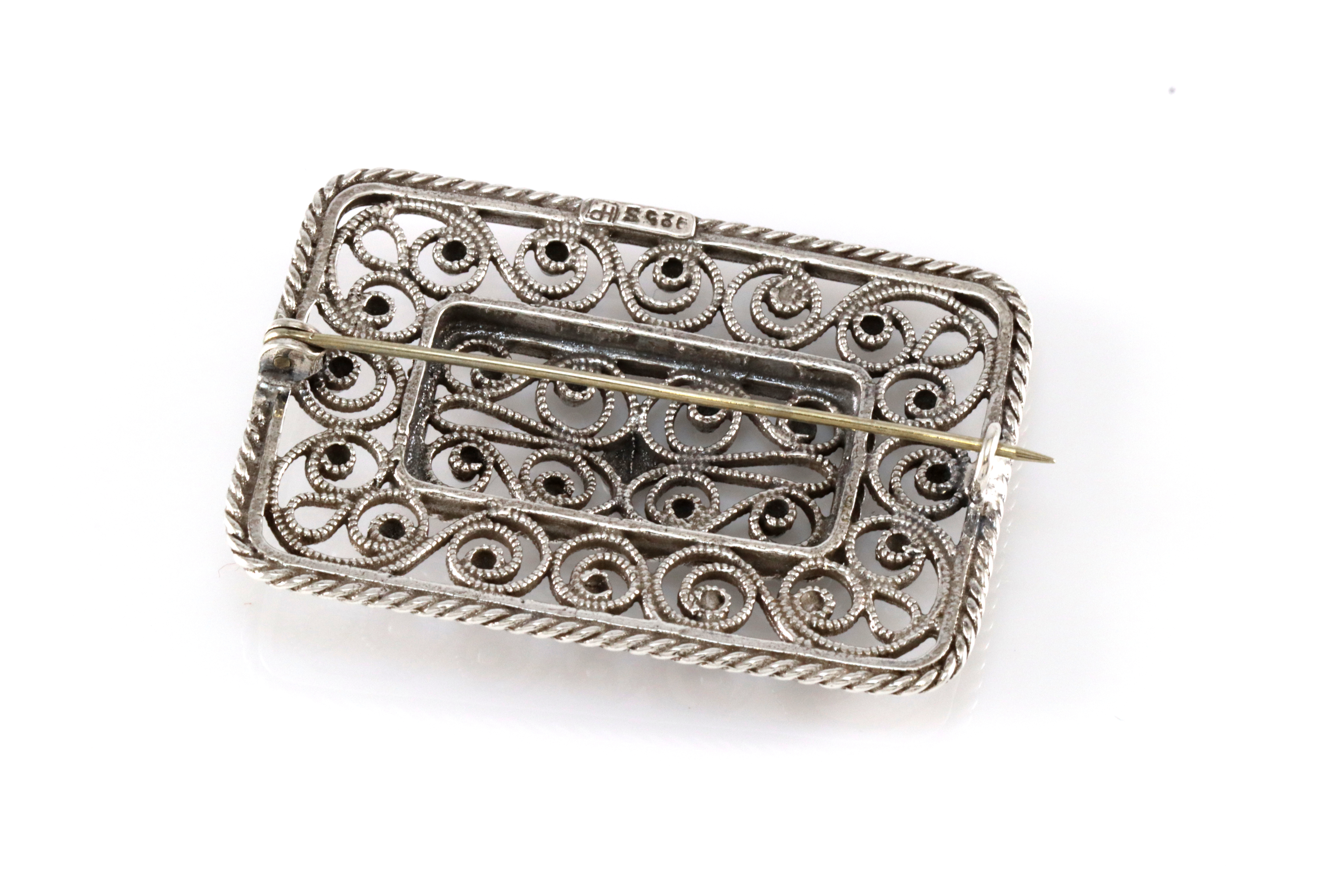 Brosje i sølv. Filigransarbeide. Produsert av Harry Pettersen, Bergen. 4,6 x 3,2 cm