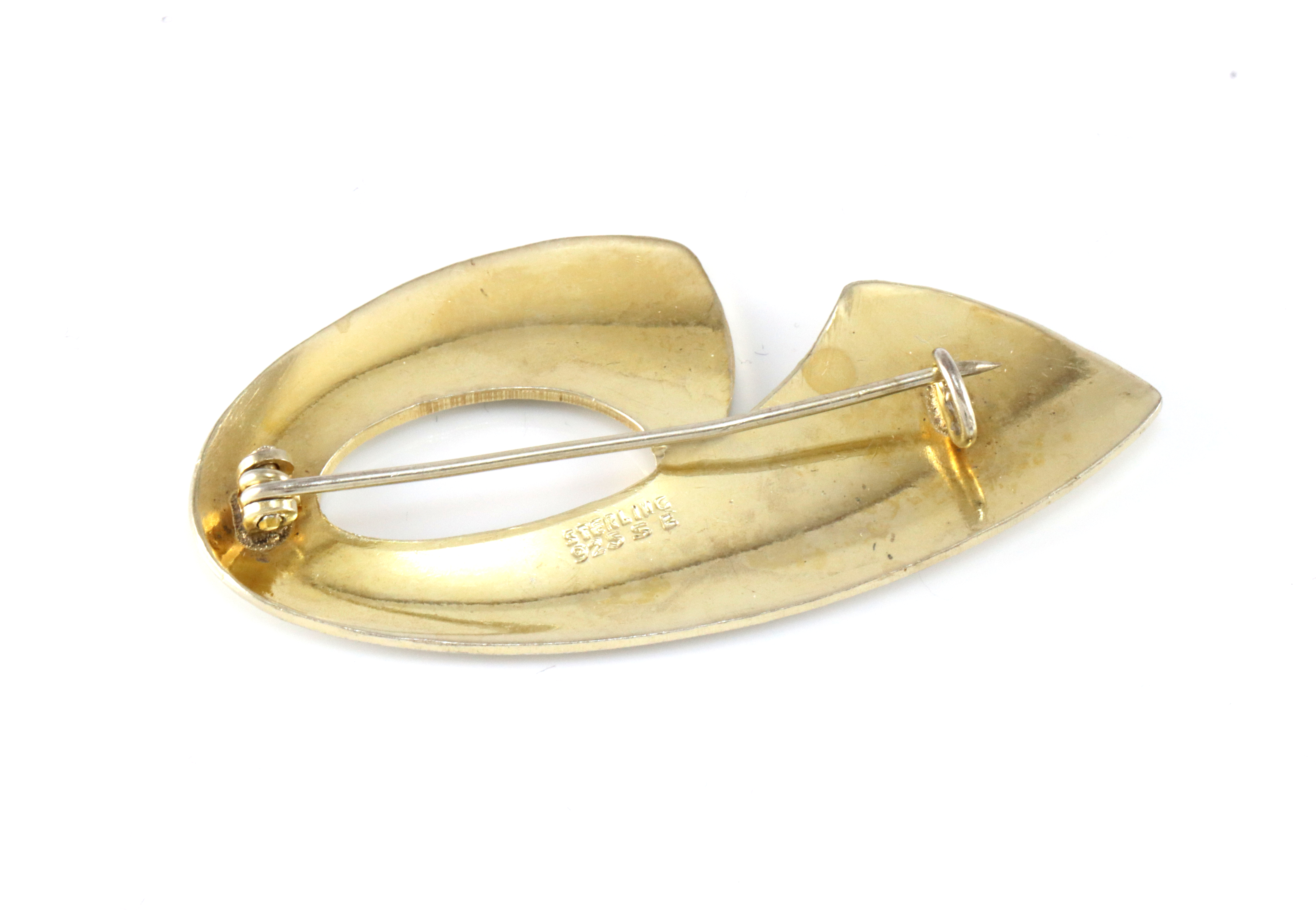 Emaljebrosje i forgyldt sølv. Hvit emalje Ukjent produsent 5,6 x 2,9 cm