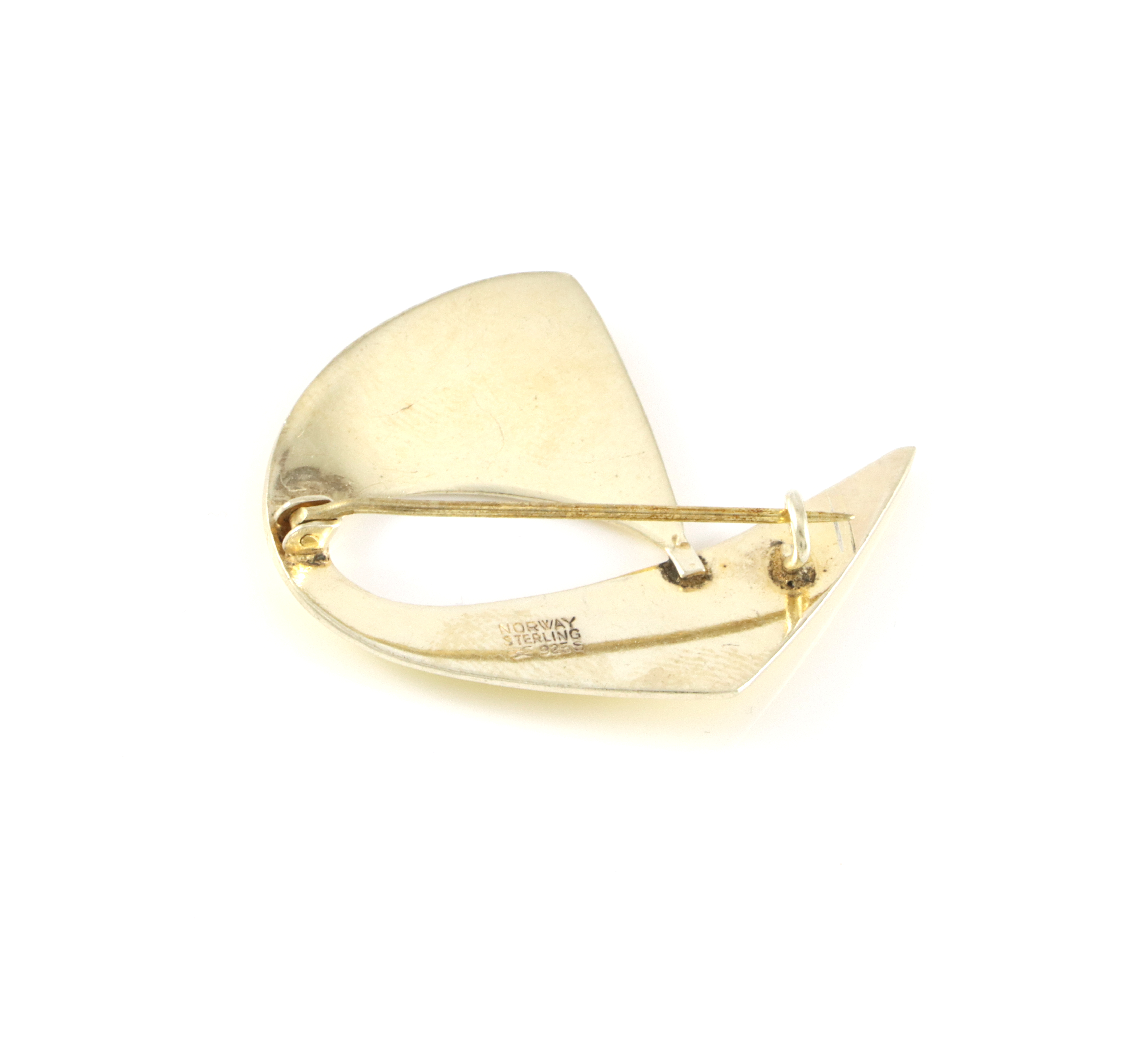 Gul emalje, forgyldt sølv. Produsert av Aksel Holmsen. 4,3 x 3,2 cm