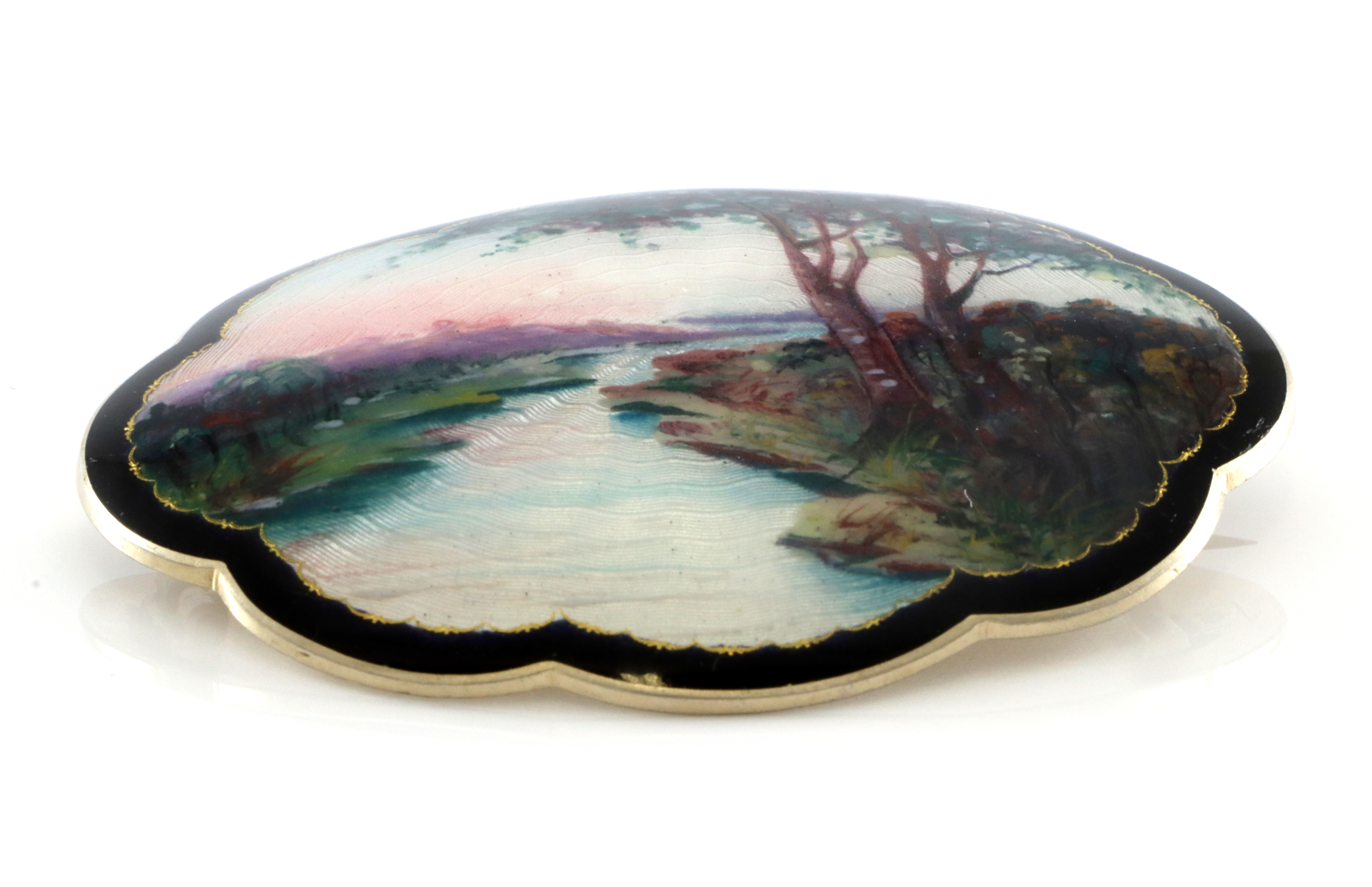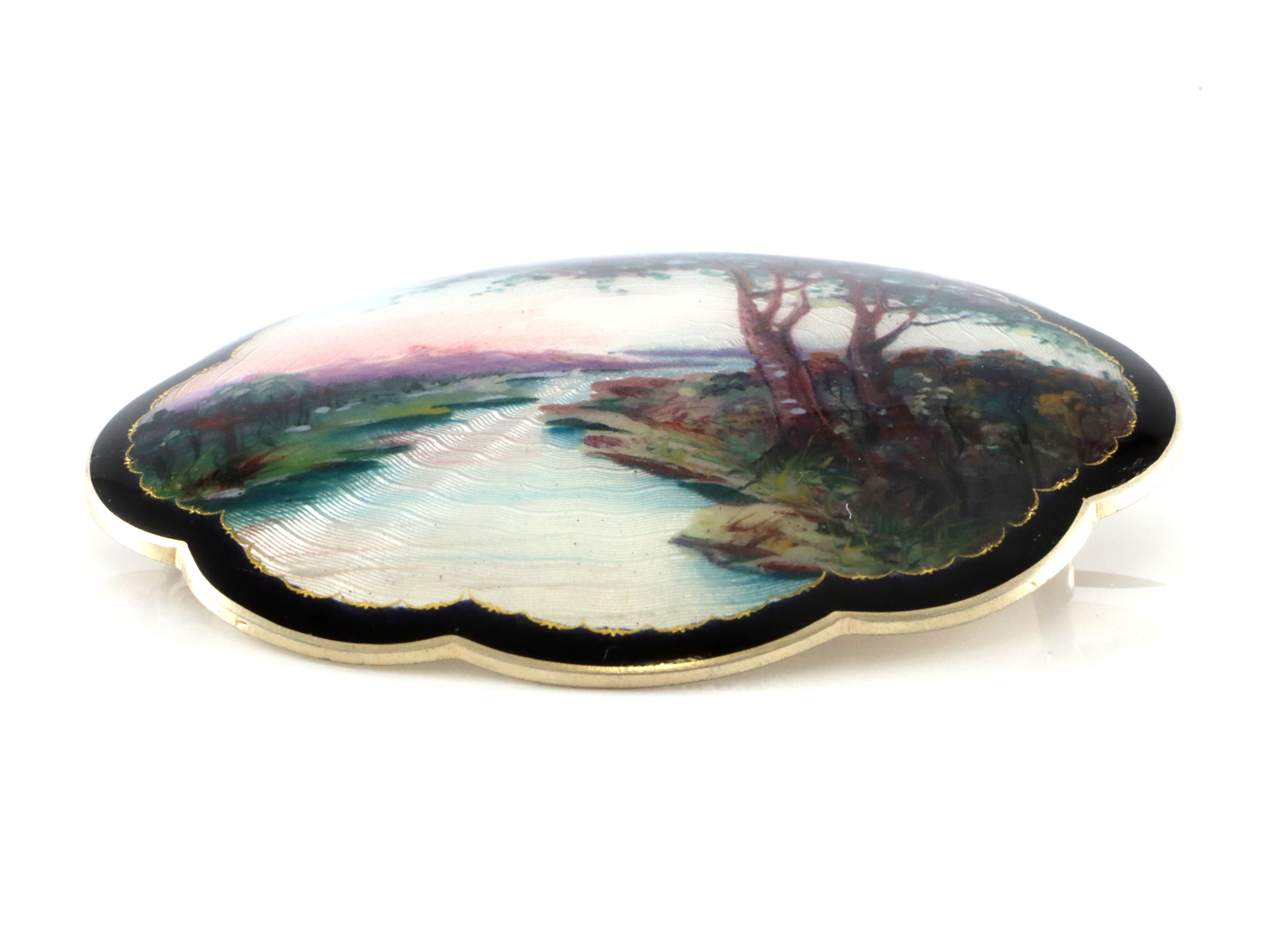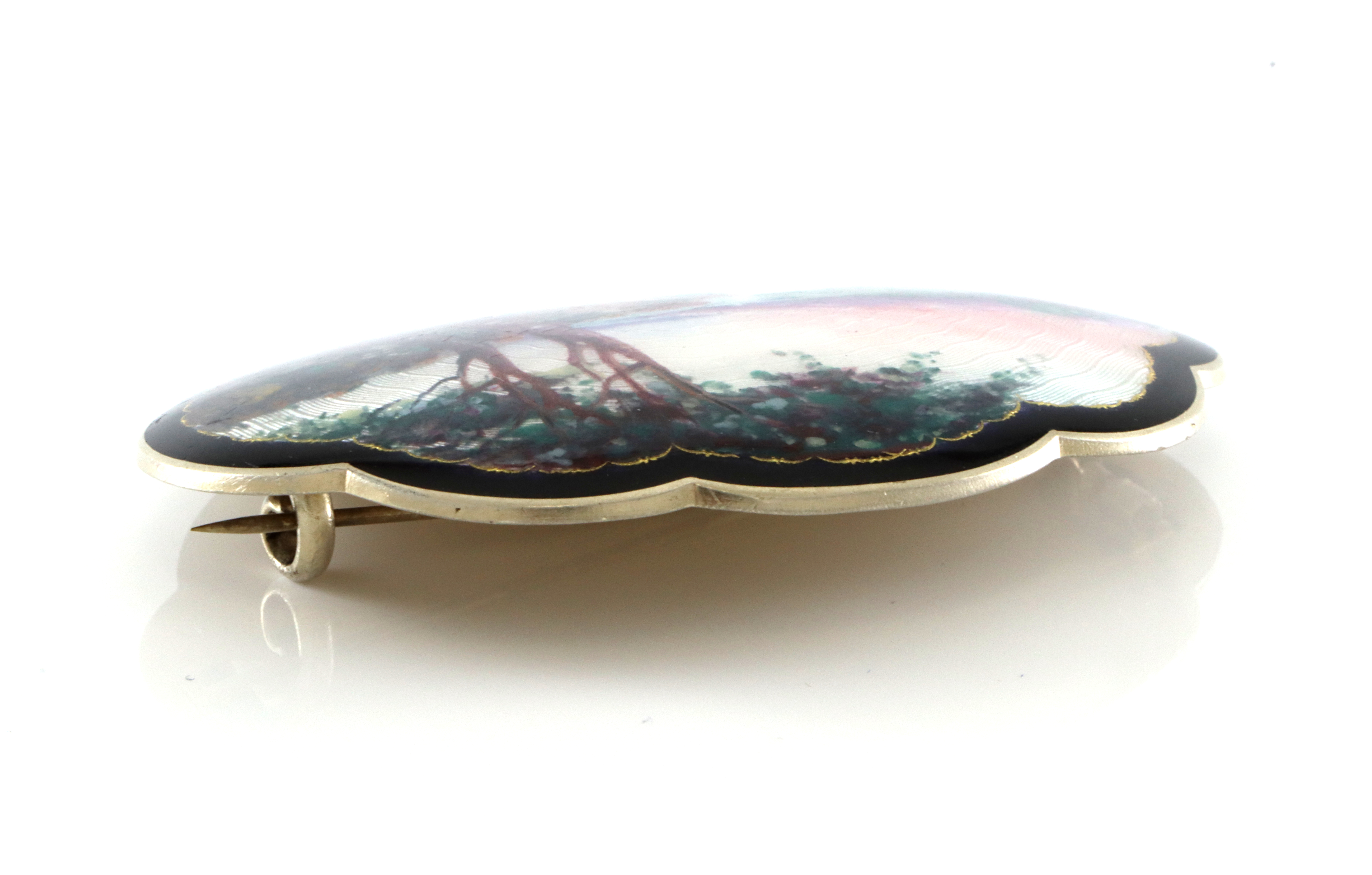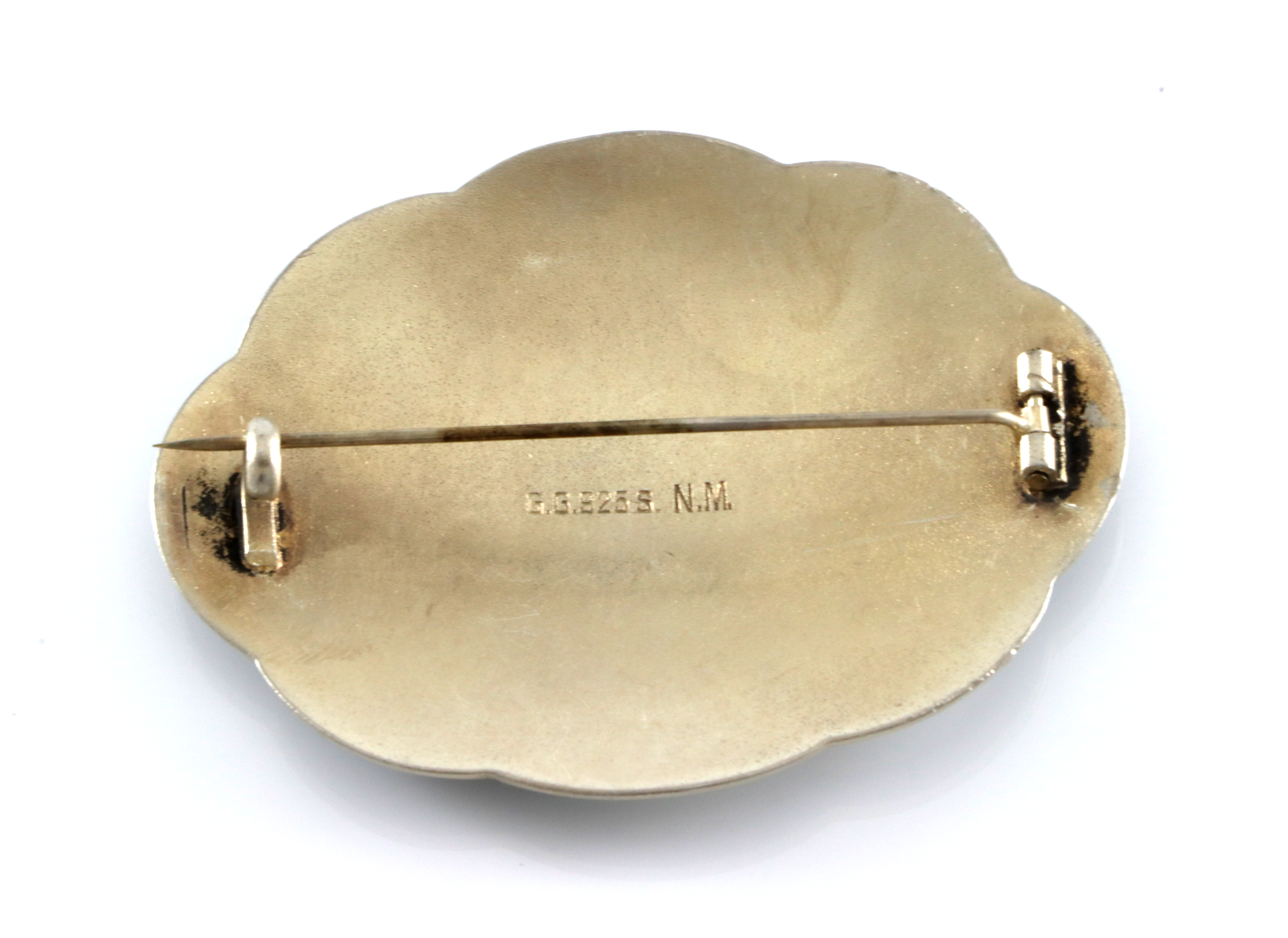 Vakker brosje fra Gustav Gaudernack Str: 64 x 48 mm Et lite avslag/hakk (som sees på kanten på venstre side)