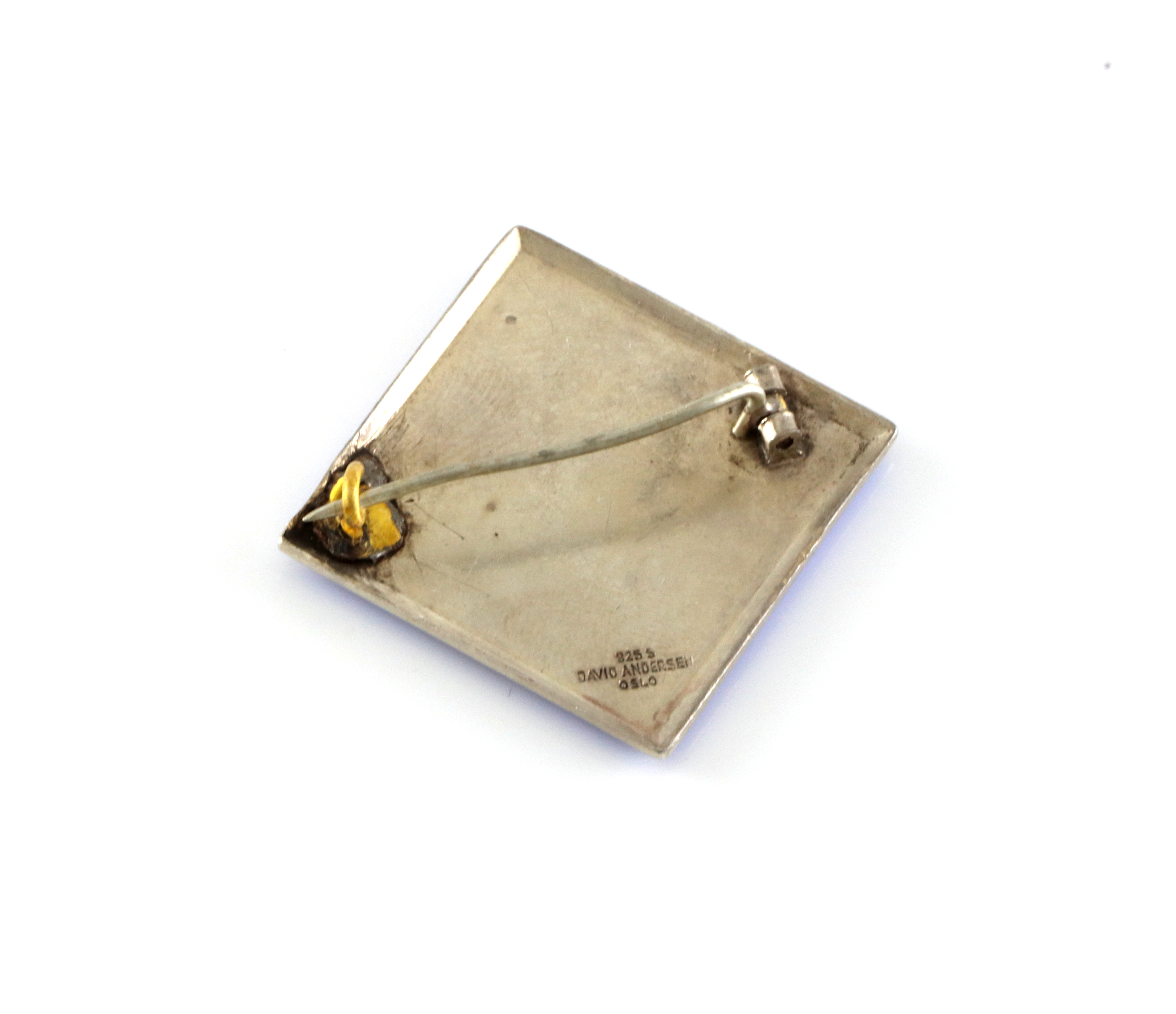 Nål/brosje i sølv og flerfarget emalje. Produsert av David-Andersen.