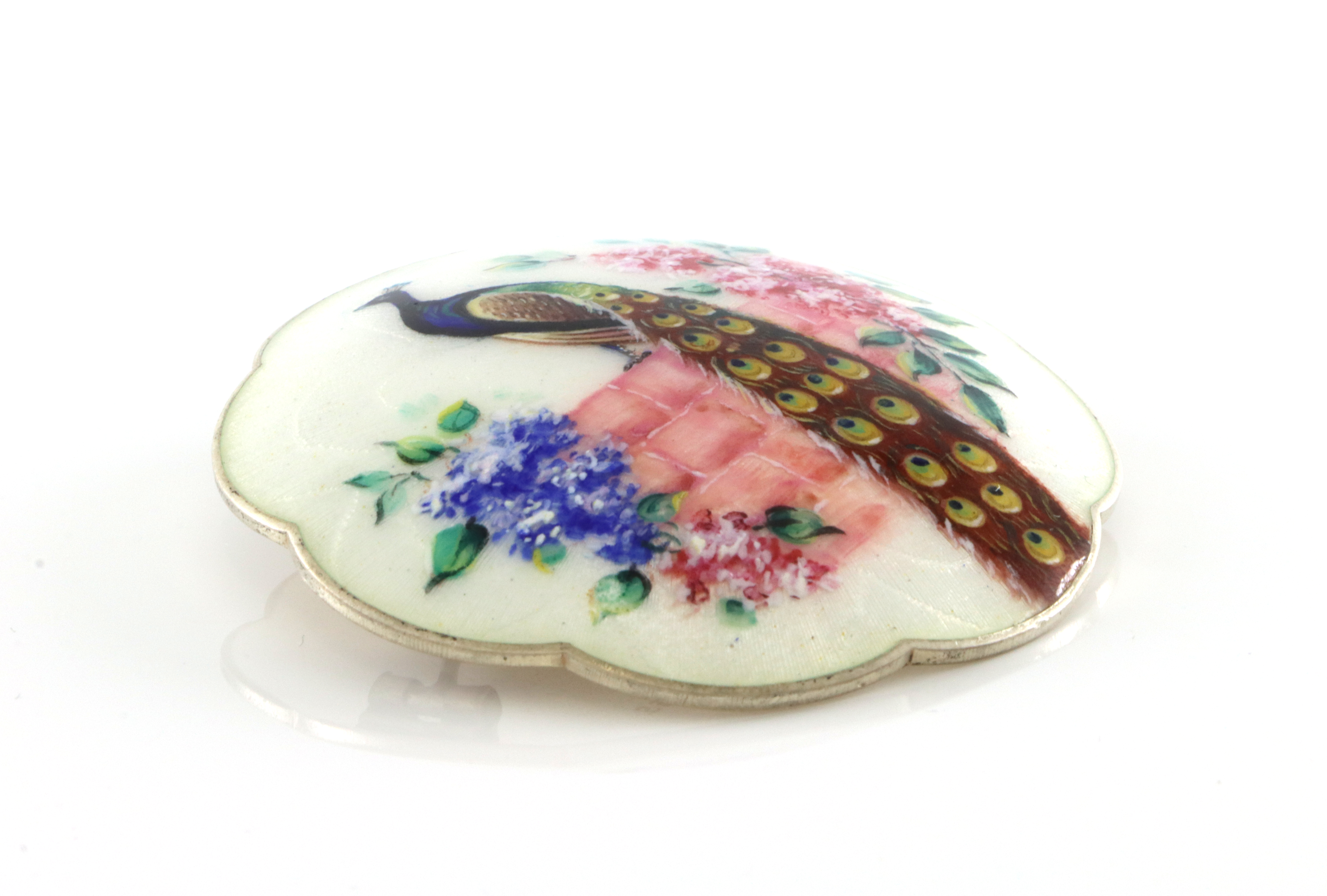 Vakker brosje fra Gustav Gaudernack Diameter: 56 mm Det er et lite avslag i emaljen som er svært lite synlig. Ellers noen overflateriper