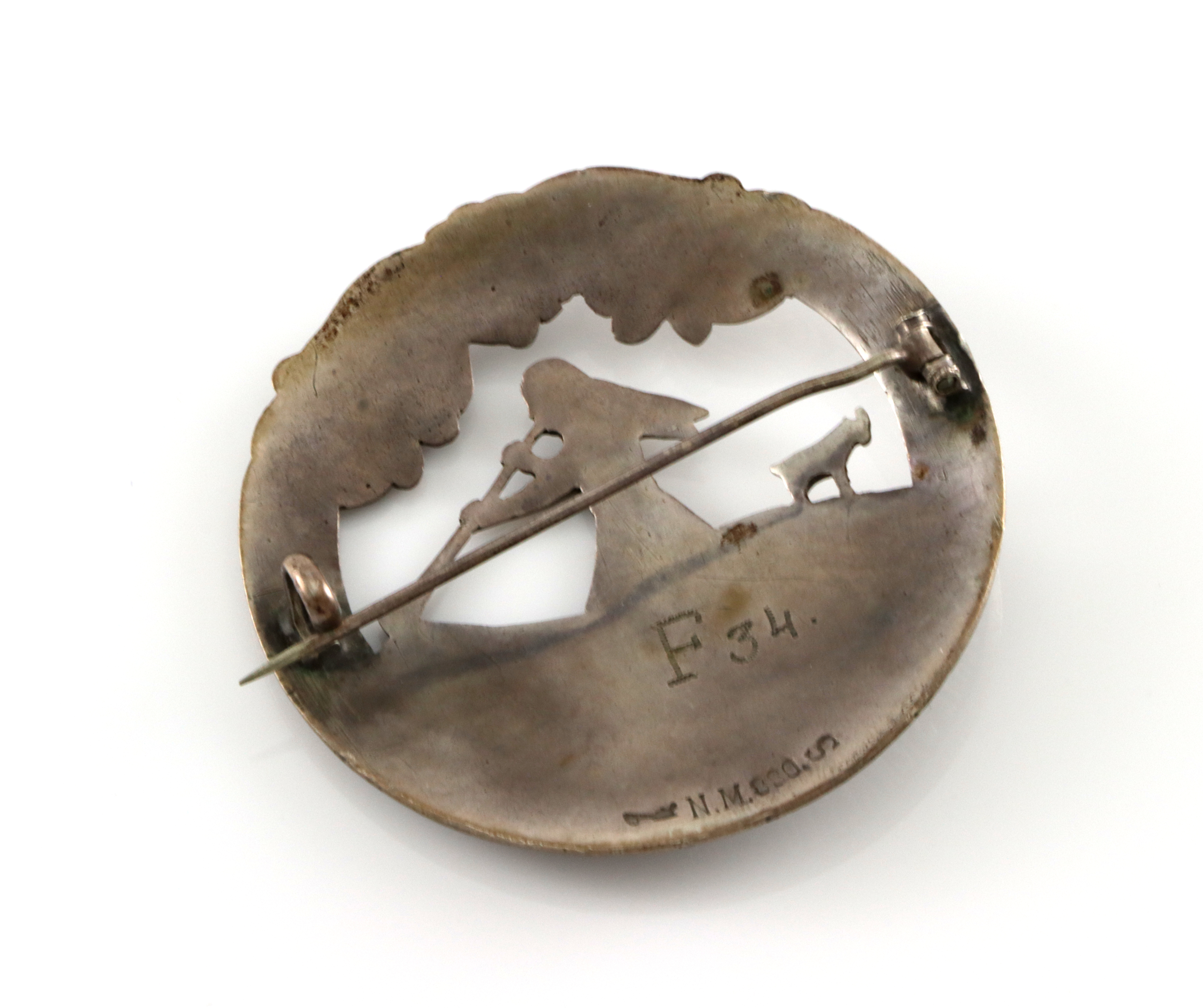 Inngravert "F34" på baksiden Diameter: 50 mm Produsent: Ukjent mesterstempel