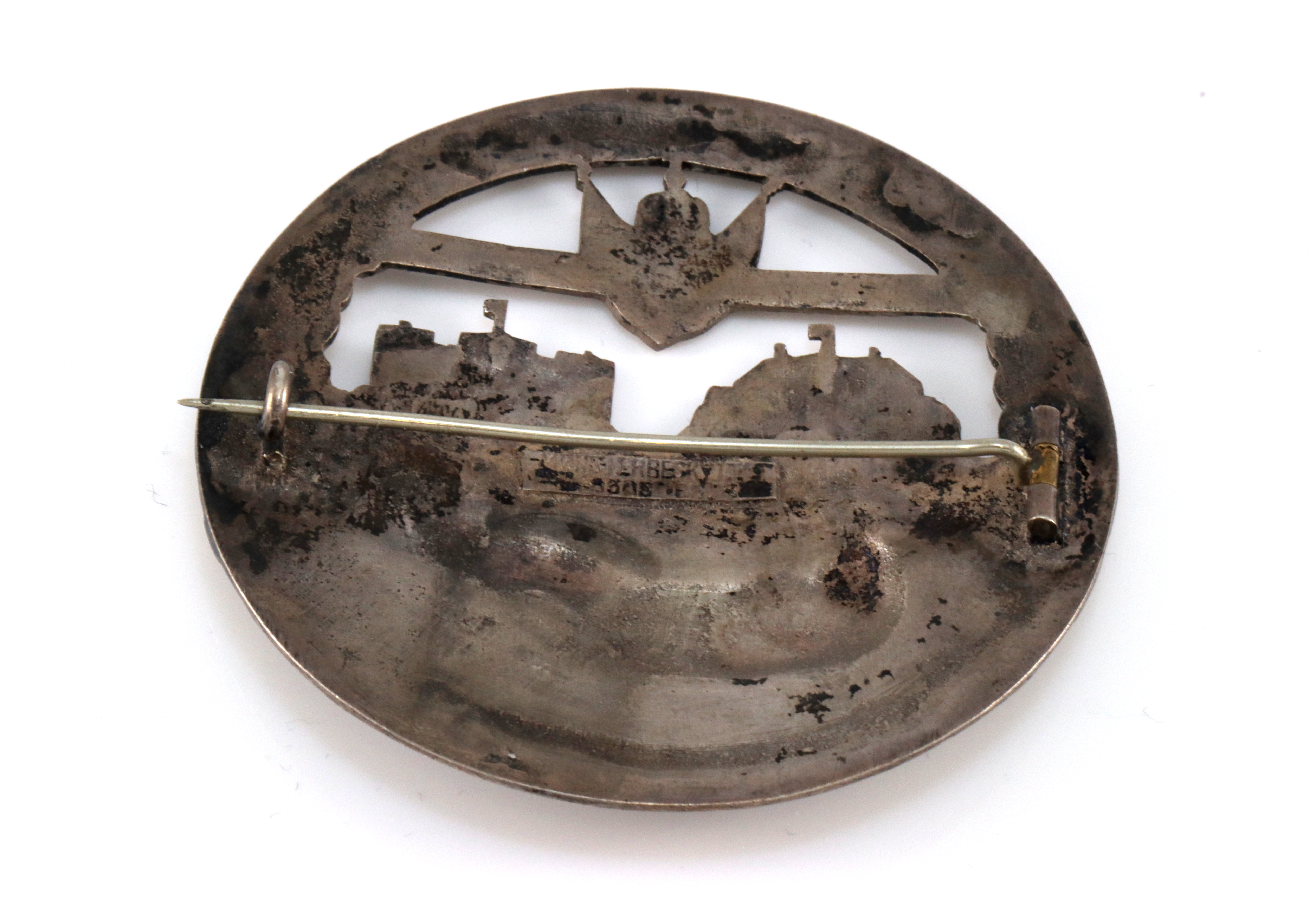 Flott nasjonalromantisk brosje i sølv med motiv av stortinget og eidsvollbygningen. "Husk gud er ataat" " Til rigsforsamlingen 1814" "1814-1914".