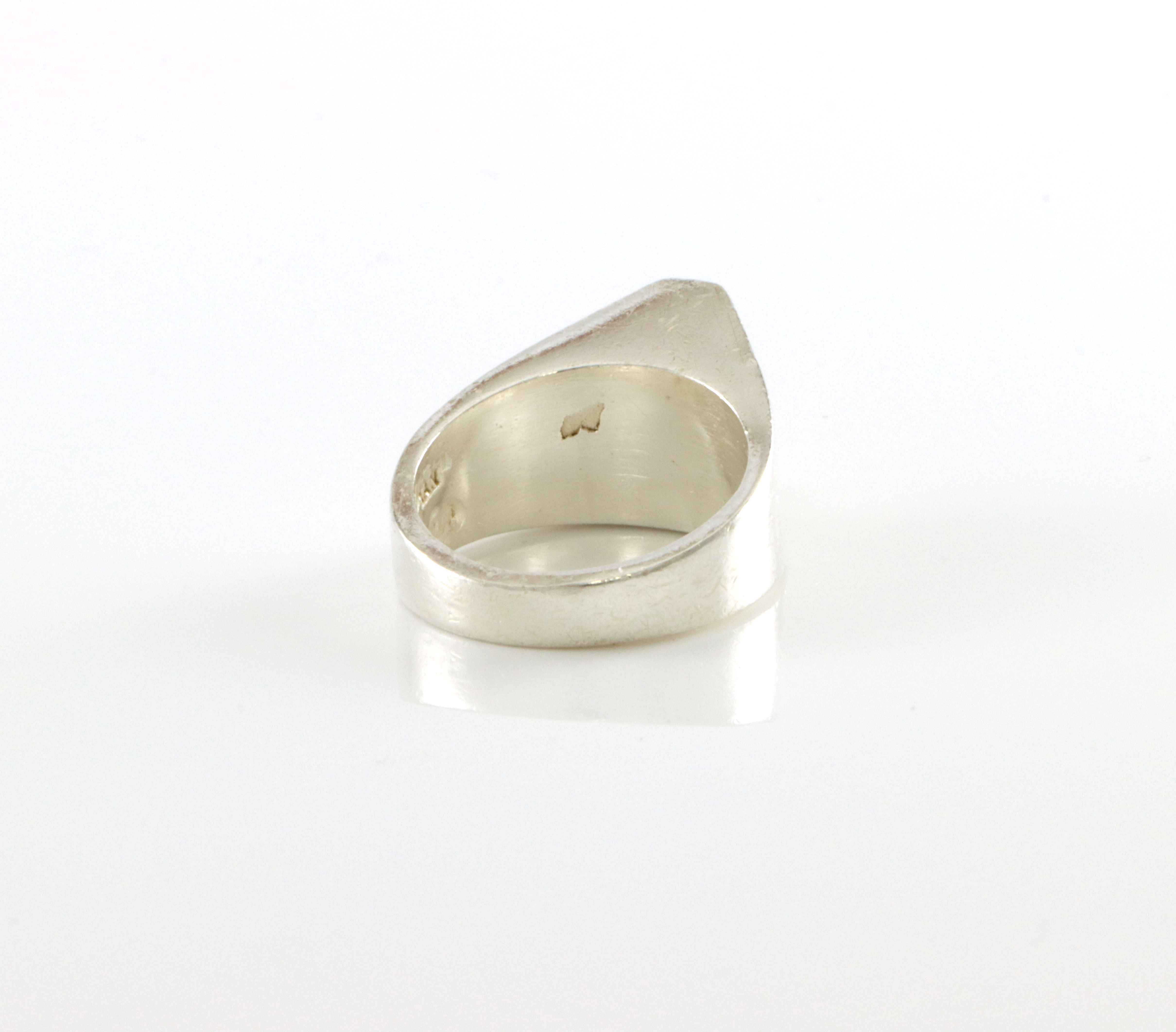 Stemplet Denmark og litt for utydelige stempler i tillegg. Sekundærstemplet H.A.Neerbye (import) Str krone: 13 x 13 mm Ringstr: 54 Produsent: ?
