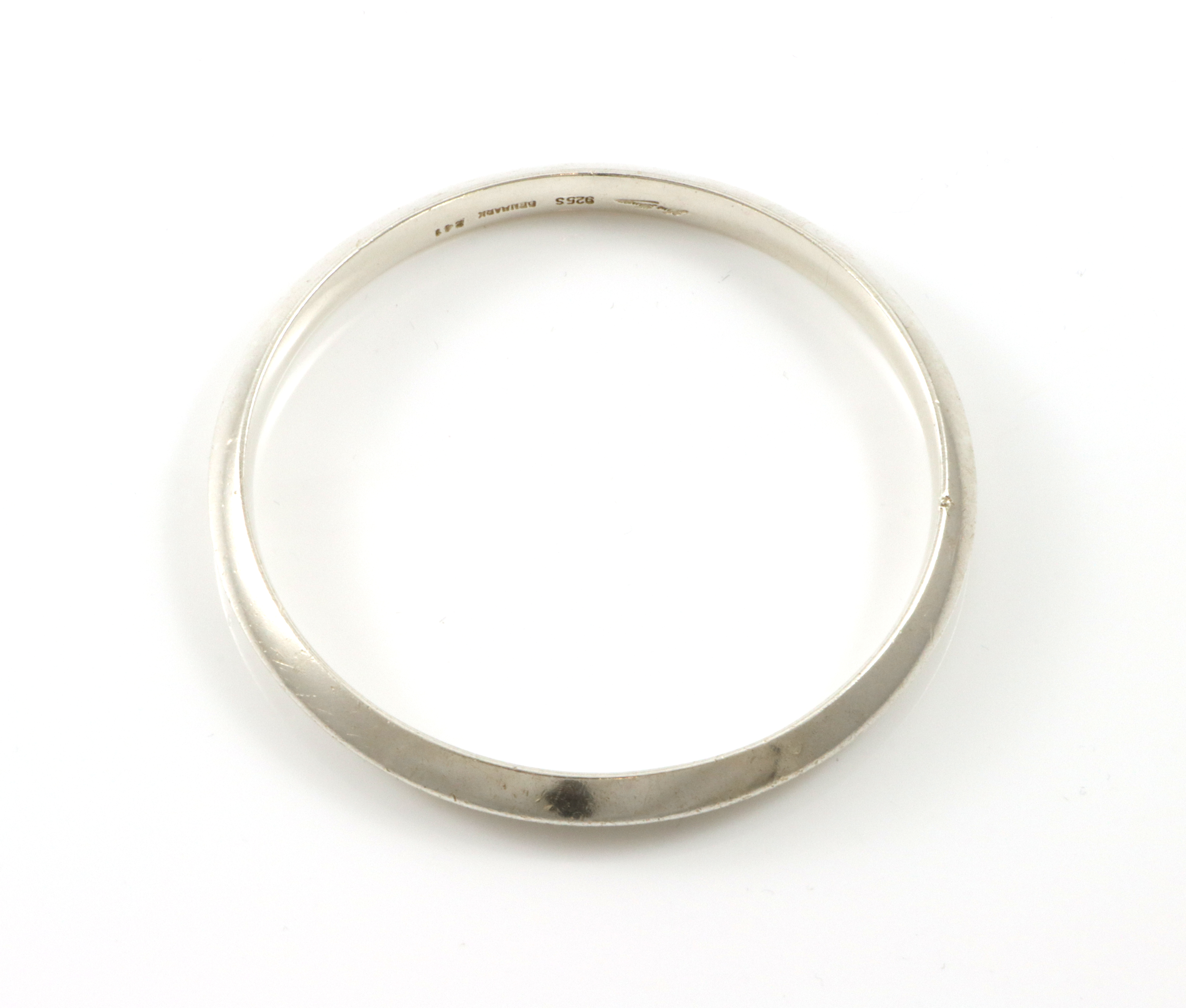 Massiv armring i 925 Sølv Bredde: 7 mm Innvendig diameter: 64 mm Produsent: Hans Hansen Denne har en del bruksmerker i form av små hakk. Det er nok pga vekten på armringen