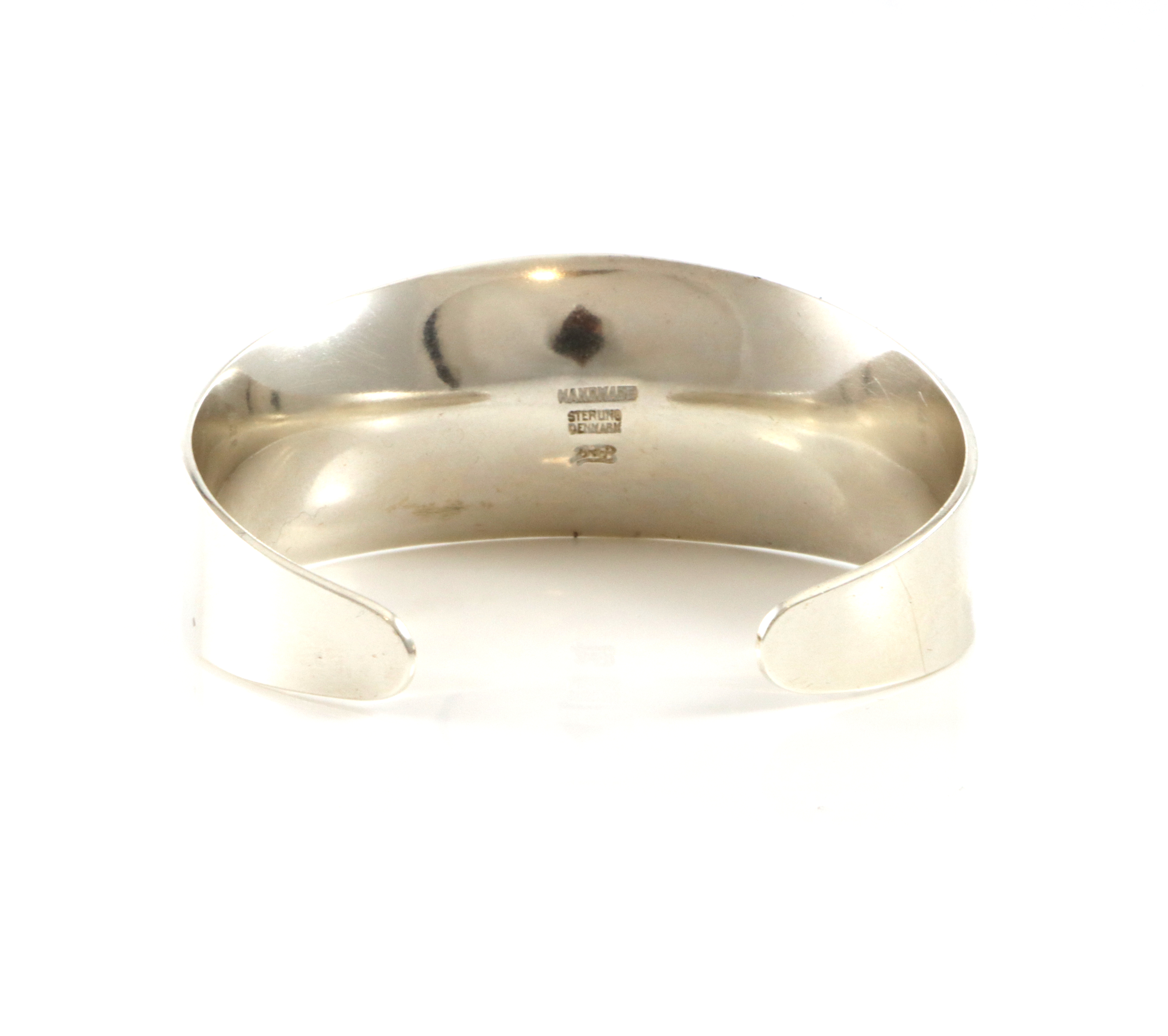 Kul armring/armklave i 925 S med grønn stein Bredde: 24 mm Innvendig diameter: 59 mm Produsent: Brødrene Bjorklund Pent brukt
