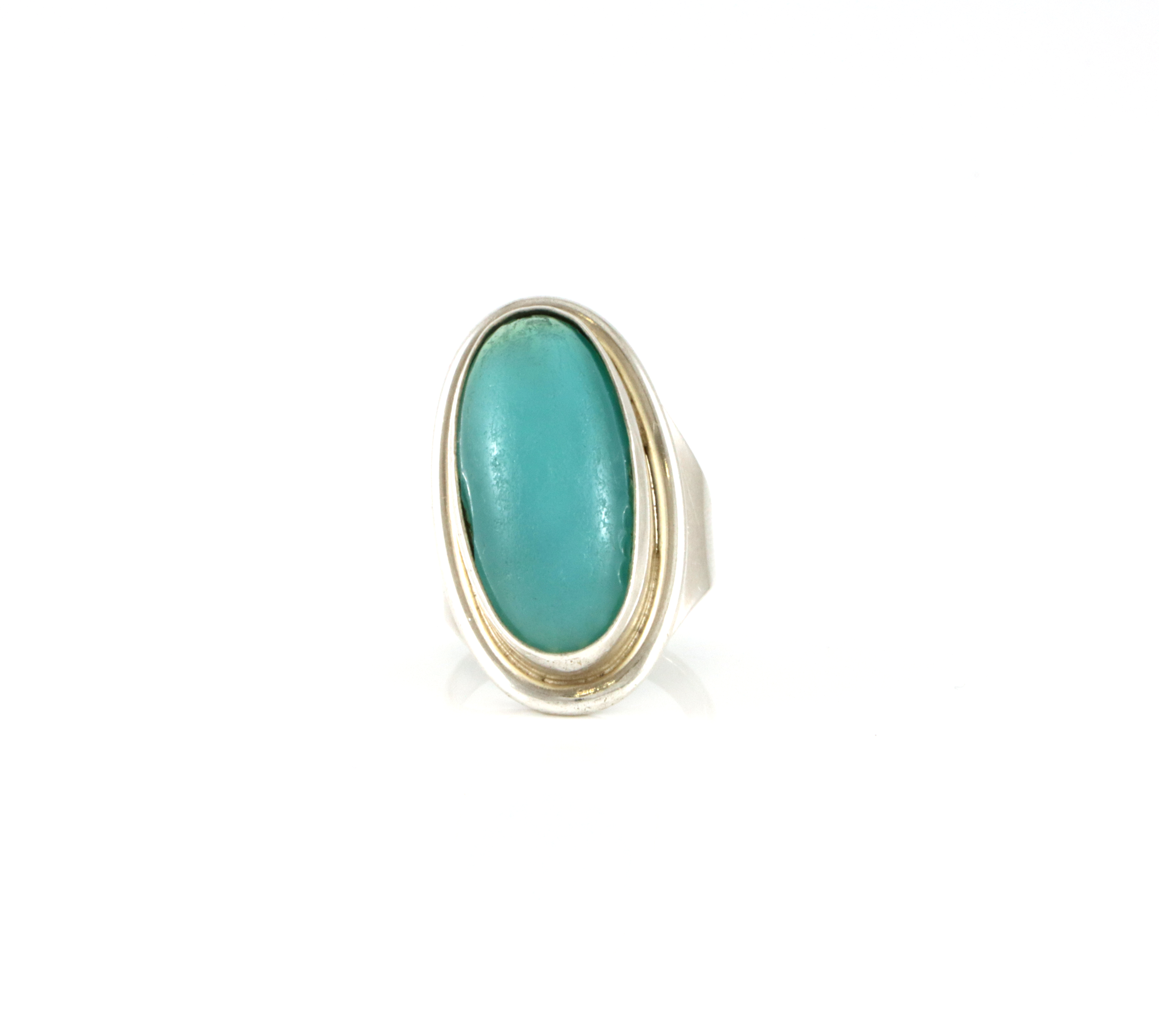 Str krone:30 x 17 mm Ringstr: 52 Steinen har en skade og er derav noe løs (skrangler) Produsent: Herman Siersbøl