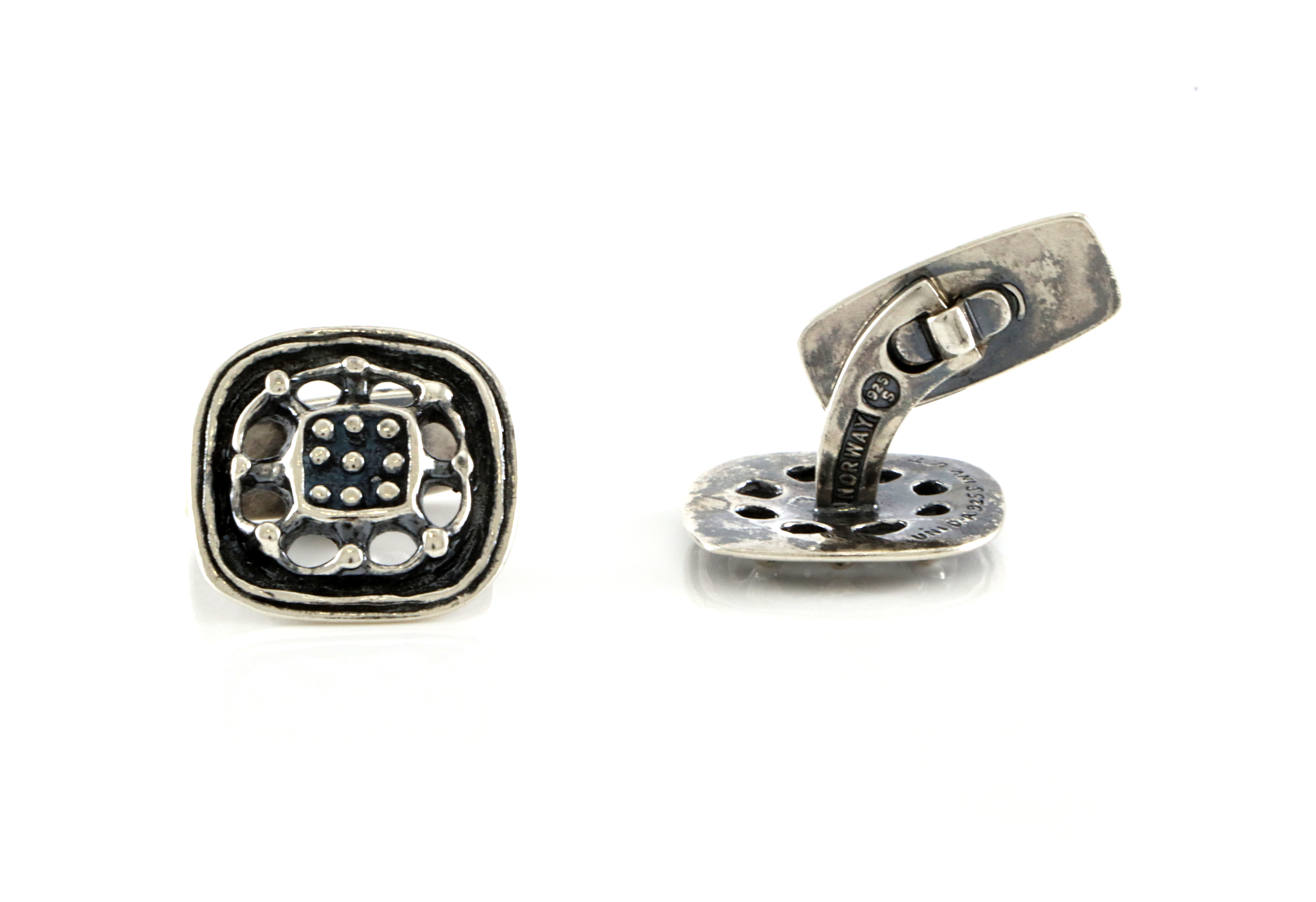 Mansjettknapper i oksidert sølv Designet av Unn Tangerud Produsert av UNI David-Andersen 2,2 x 2,2 cm