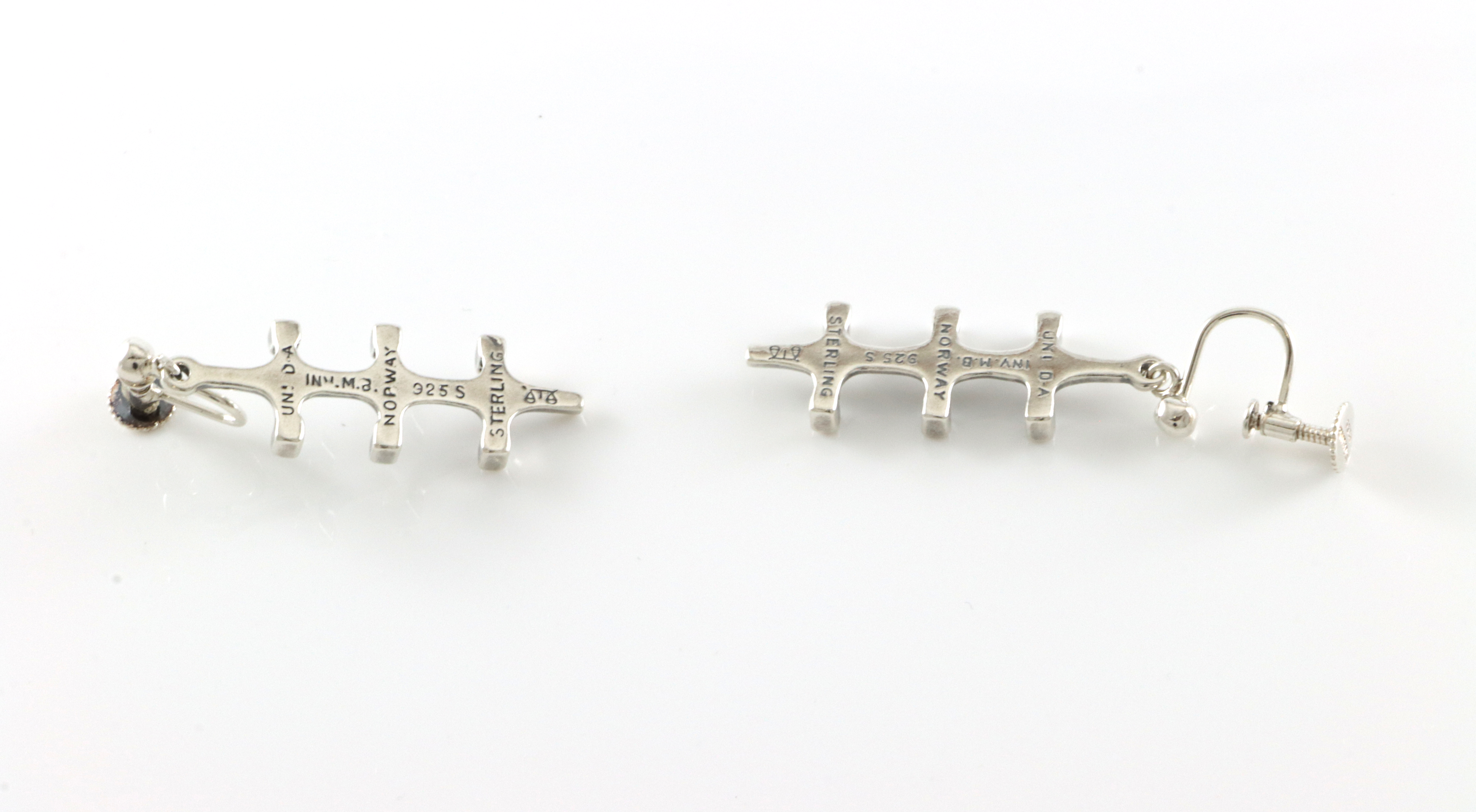 Ørepynt i oksidert sølv Designet av Marianne Berg Produsert av David-Andersen "Mariannes sølvknipling" Med skru
