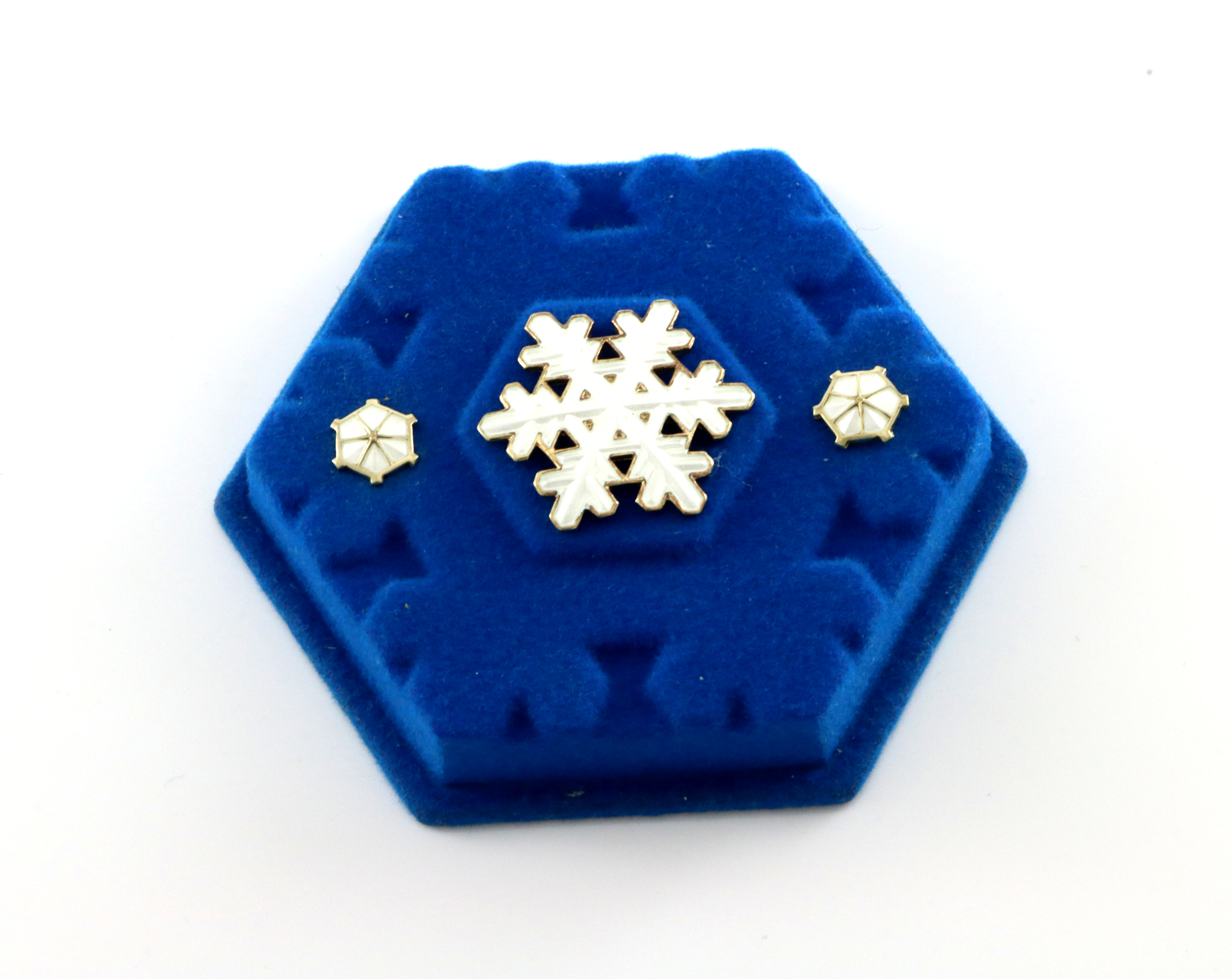 Arctic Rose smykkesett i 925 Sølv og hvit emalje med original eske Diameter brosje: 30 mm Diameter øredobber: 10 mm Øredobber med stikk I god stand Med de originale prislappene under