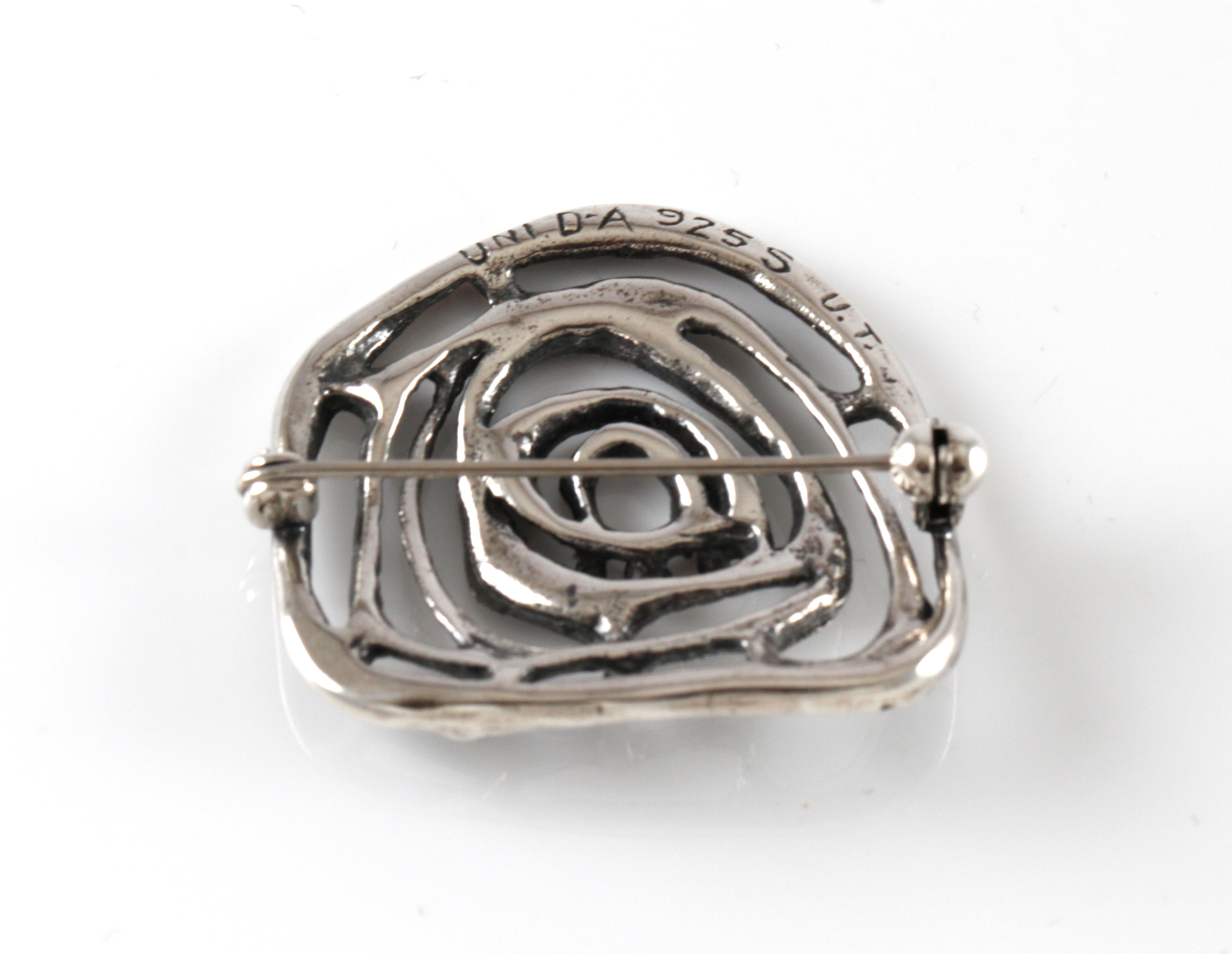 Morsom oksidert brosje designet av Unn Tangerud for David-Andersen. 3,5 x 3,2 cm