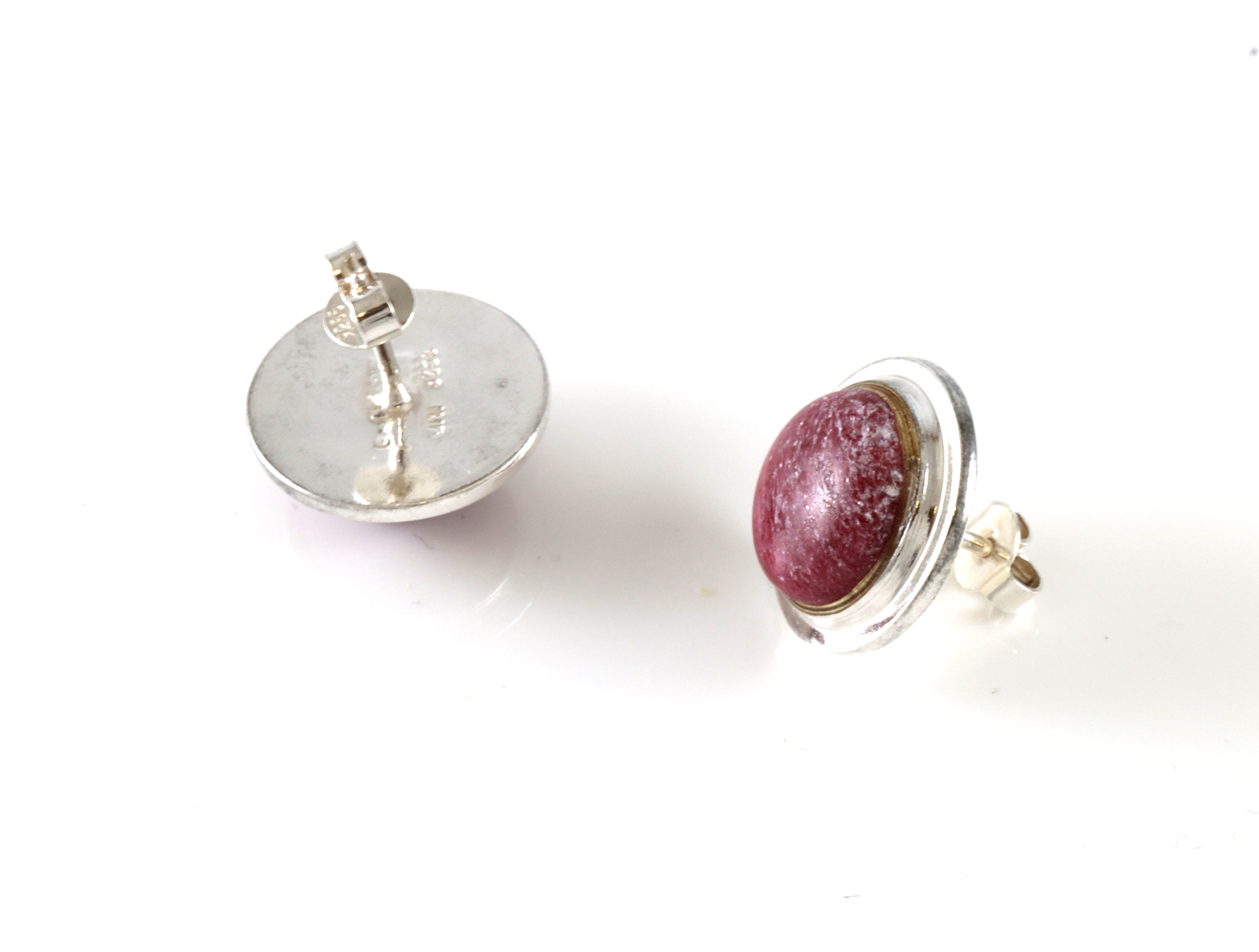 Ørepynt i sølv, produsert av UNI David-Andersen. Ukjent designer. Steinen er thulitt (Norges nasjonalsten) 1,6 x 1,6 cm Noe slitasje på steinene