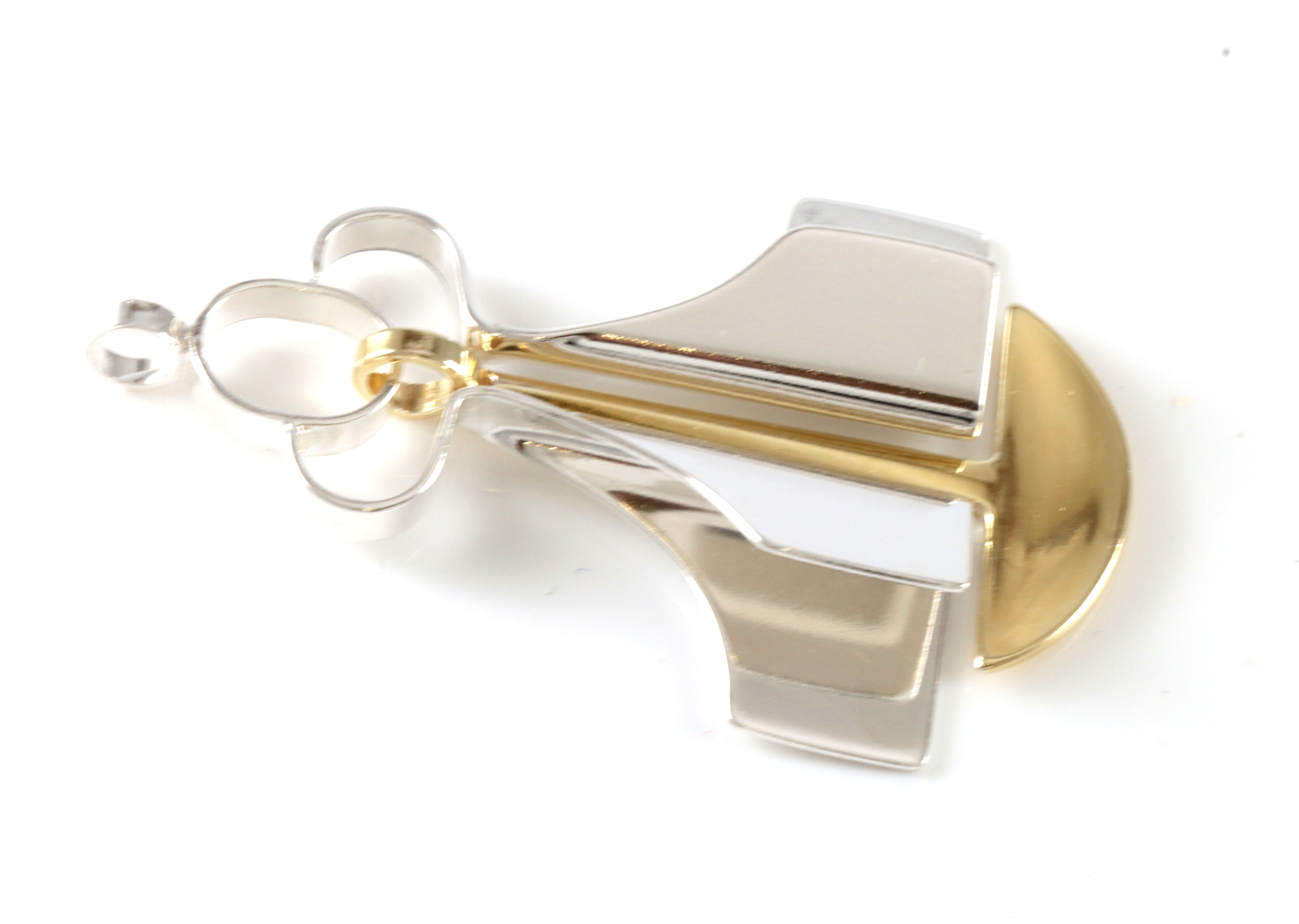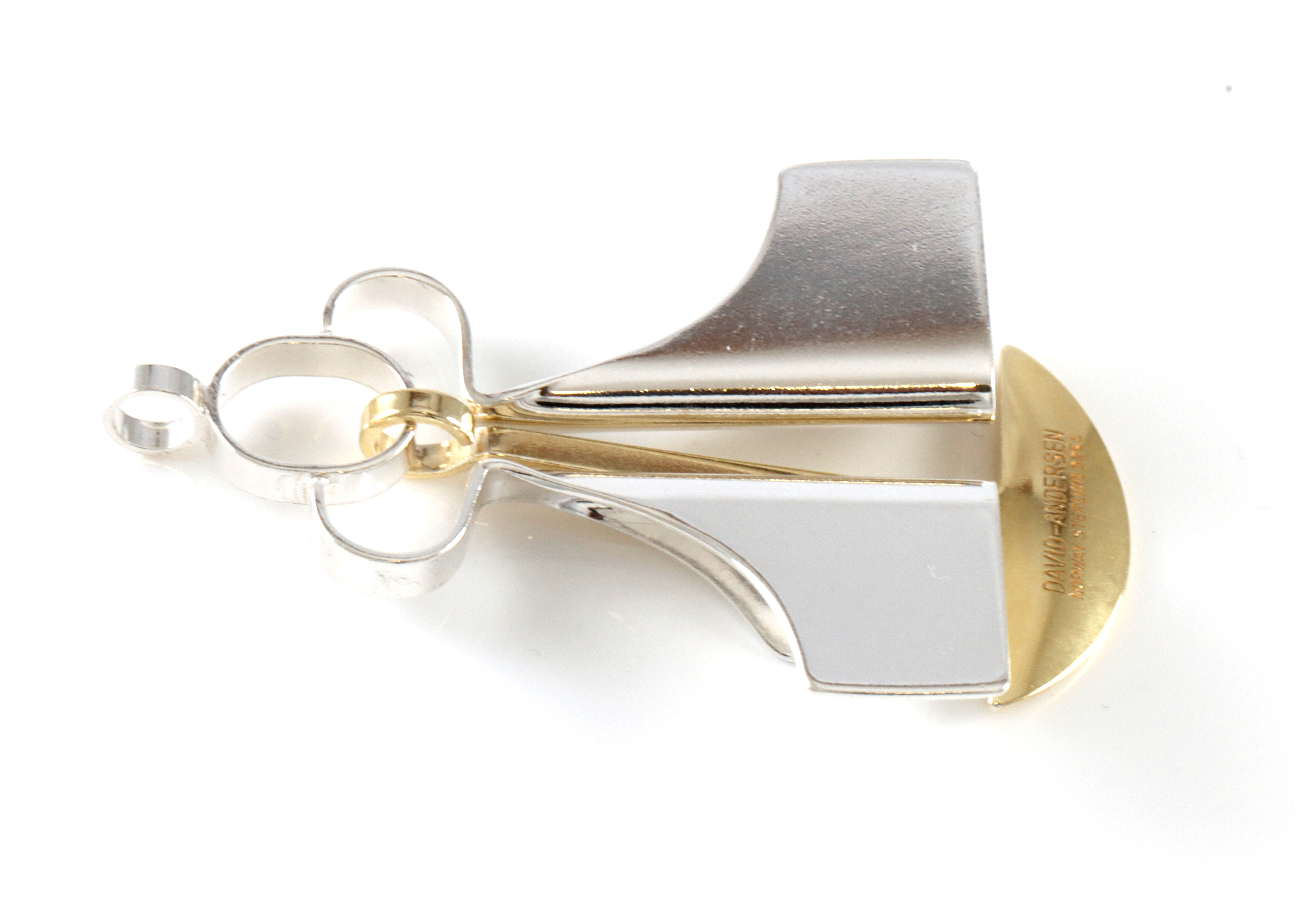 Anheng i sølv fra David-Andersen. Designer er ukjent for oss. Har en forgyldt sølv "pendel" i midten. 6,0 cm langt Uvanlig type