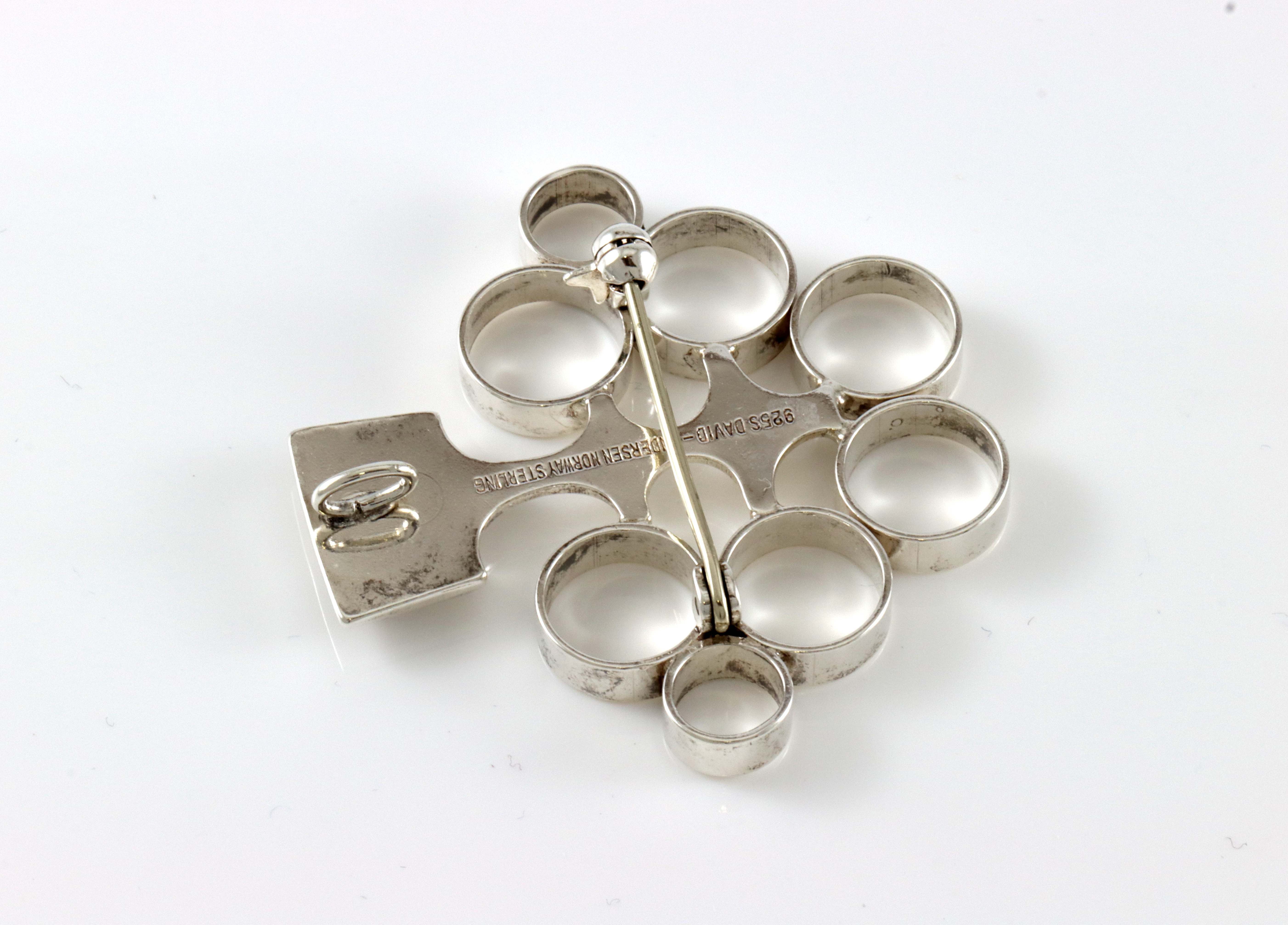 Kombinert anheng og brosje i sølv, produsert av David-Andersen. Designer er nok Bjørn Sigurd Østern. Ikke så ofte å se denne varianten. 4,5 x 4,3 cm