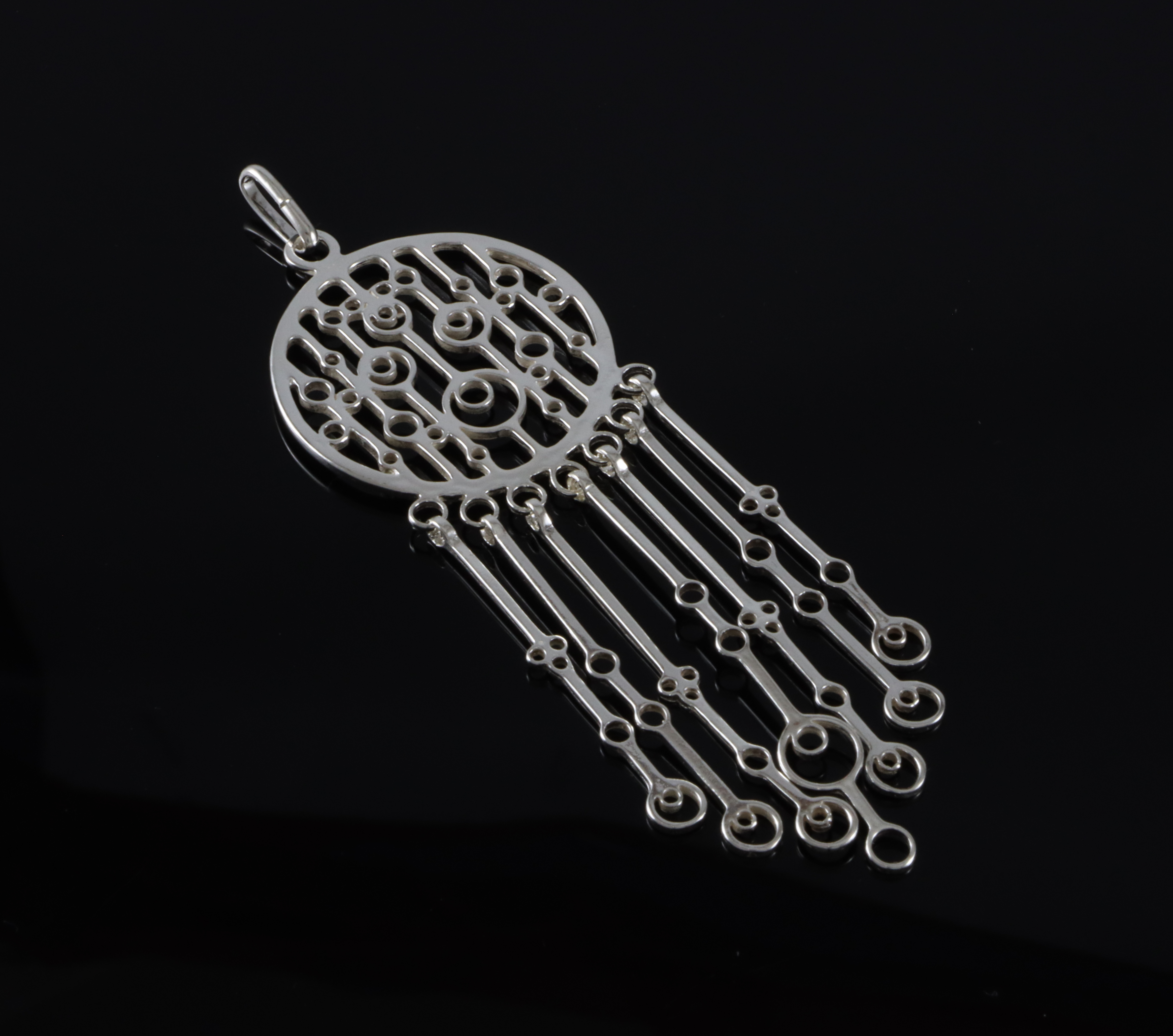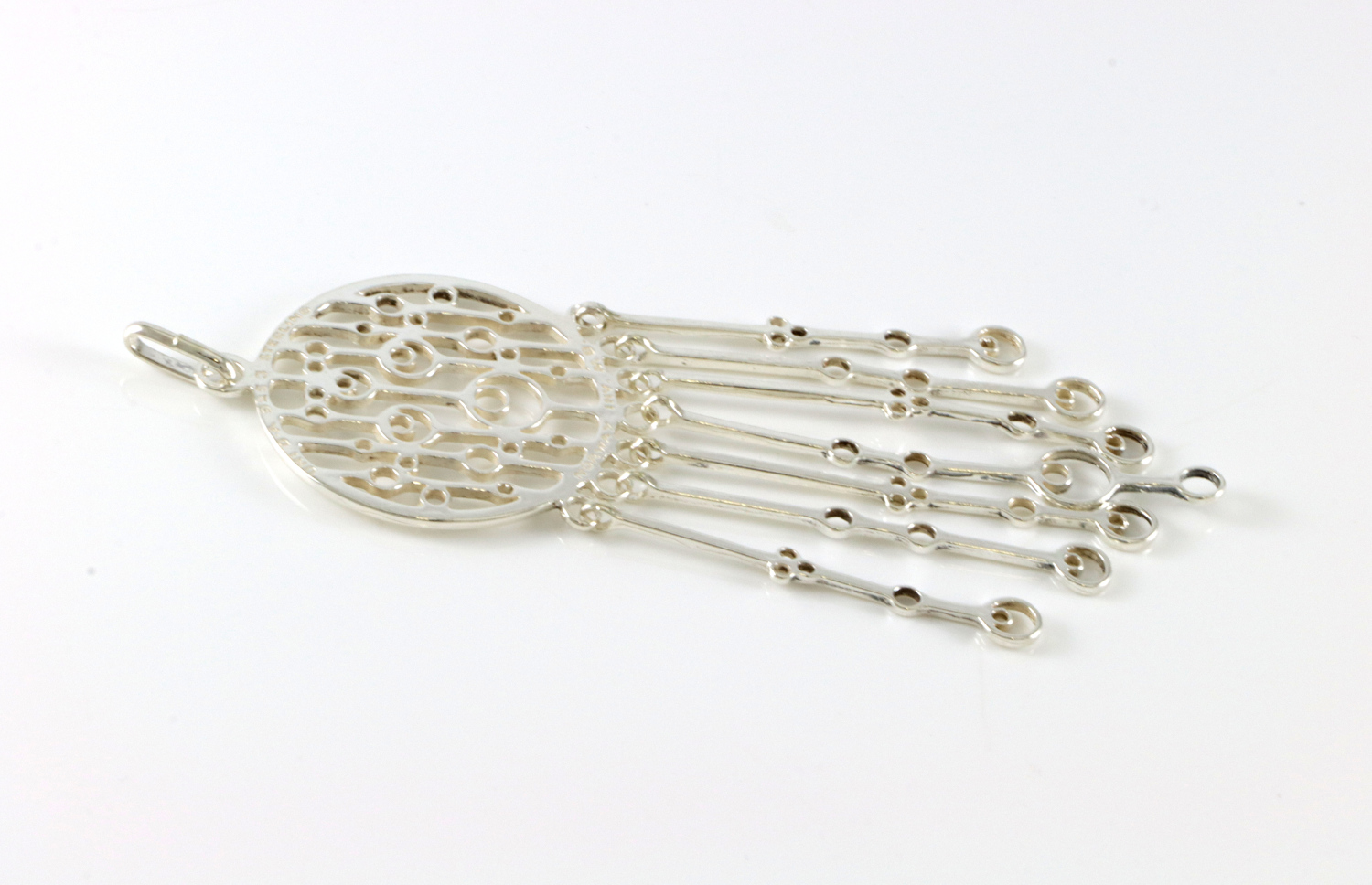 Anheng i sølv. Produsert av David-Andersen, designet av Marianne Berg. 10,5 cm langt