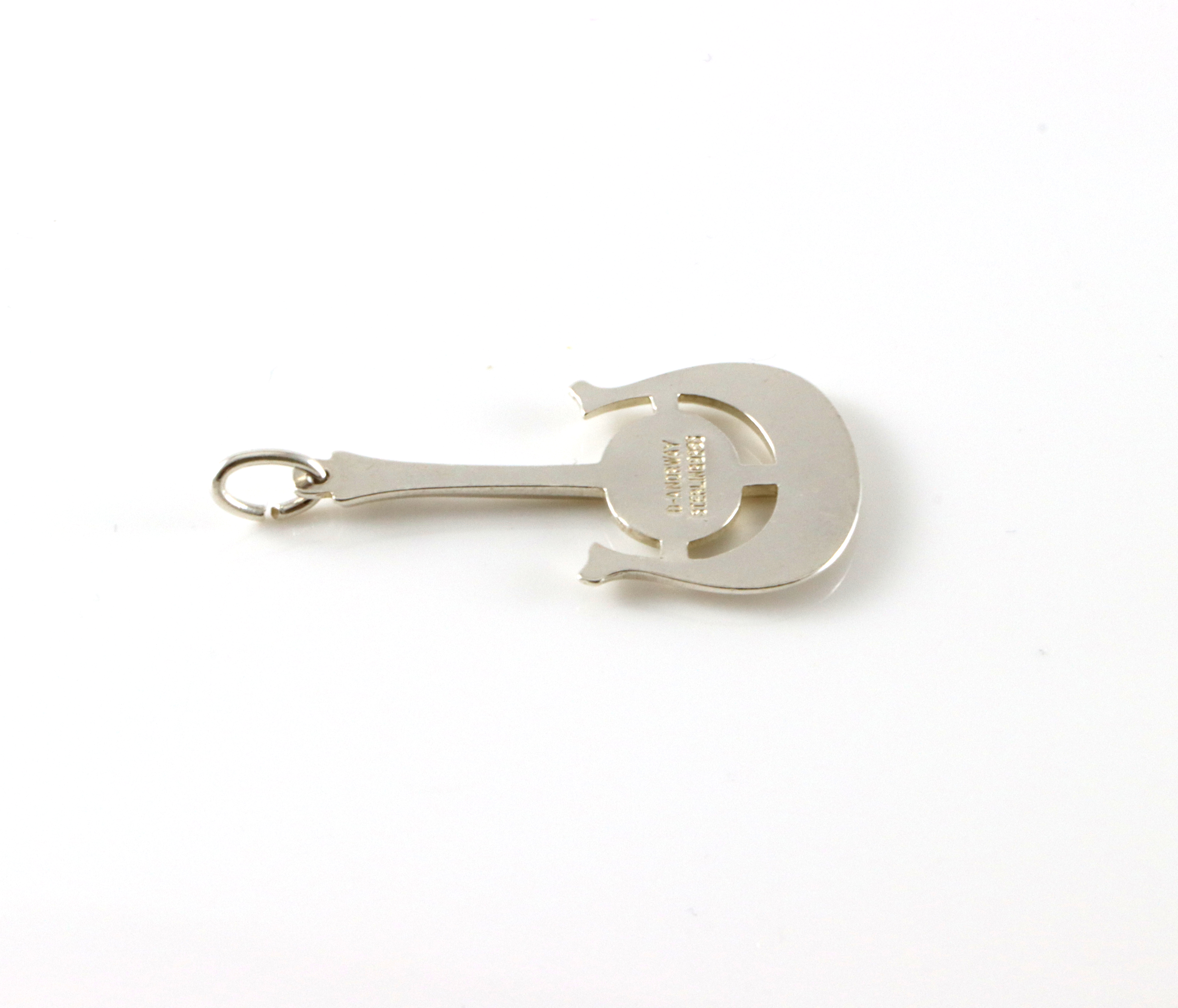 Lite anheng i sølv. Produsert av David-Andersen Disse små har nok opprinnelig vært ment som ørepynt, men vi får dem ofte inn med anhengsøsken. Så de har nok også vært solgt som små anheng. Mangler stein. 3,8 x 1,8 cm
