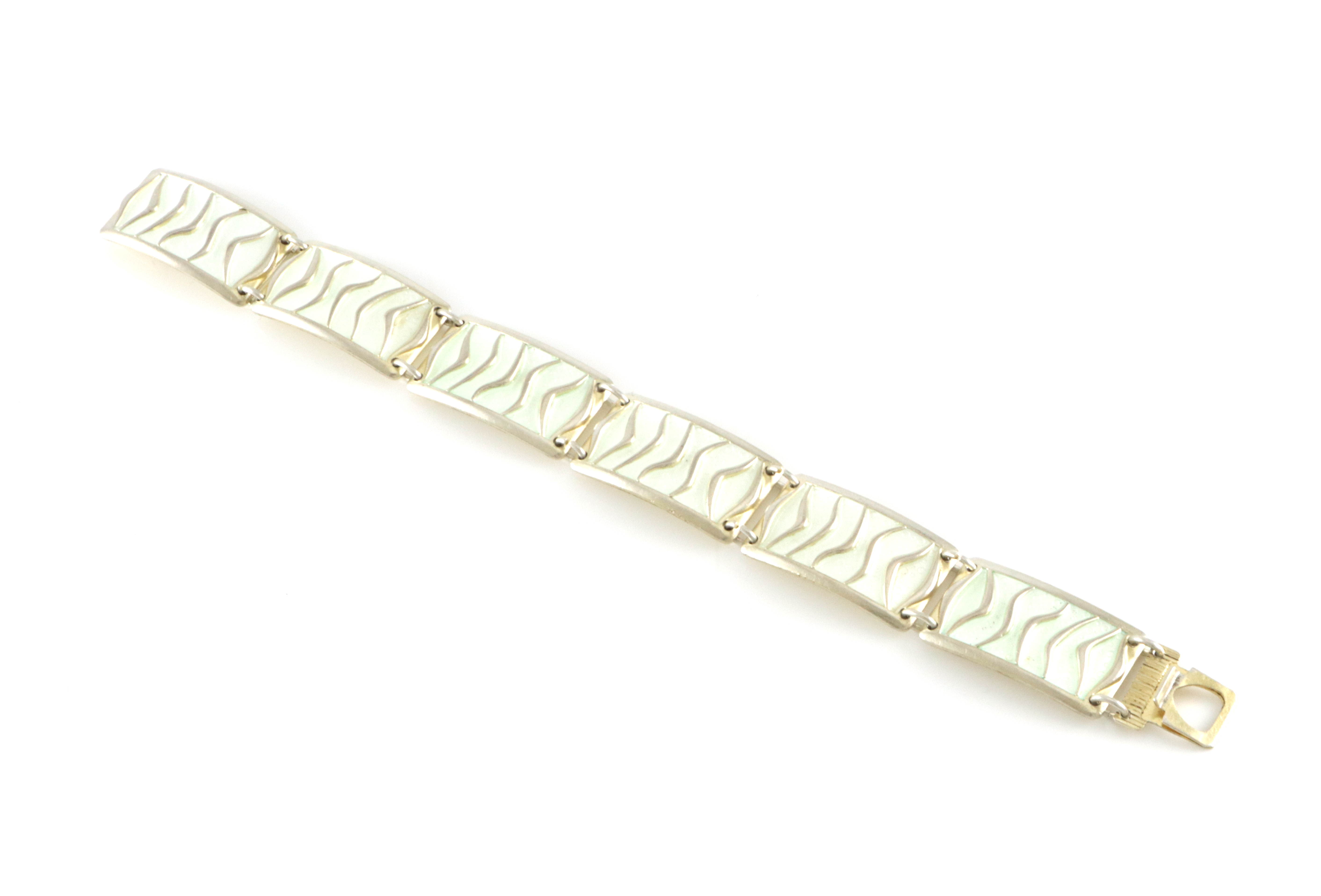 Agnar Skrede. "Bølge"/Wave" armbånd i 925 Sølv og hvit emalje