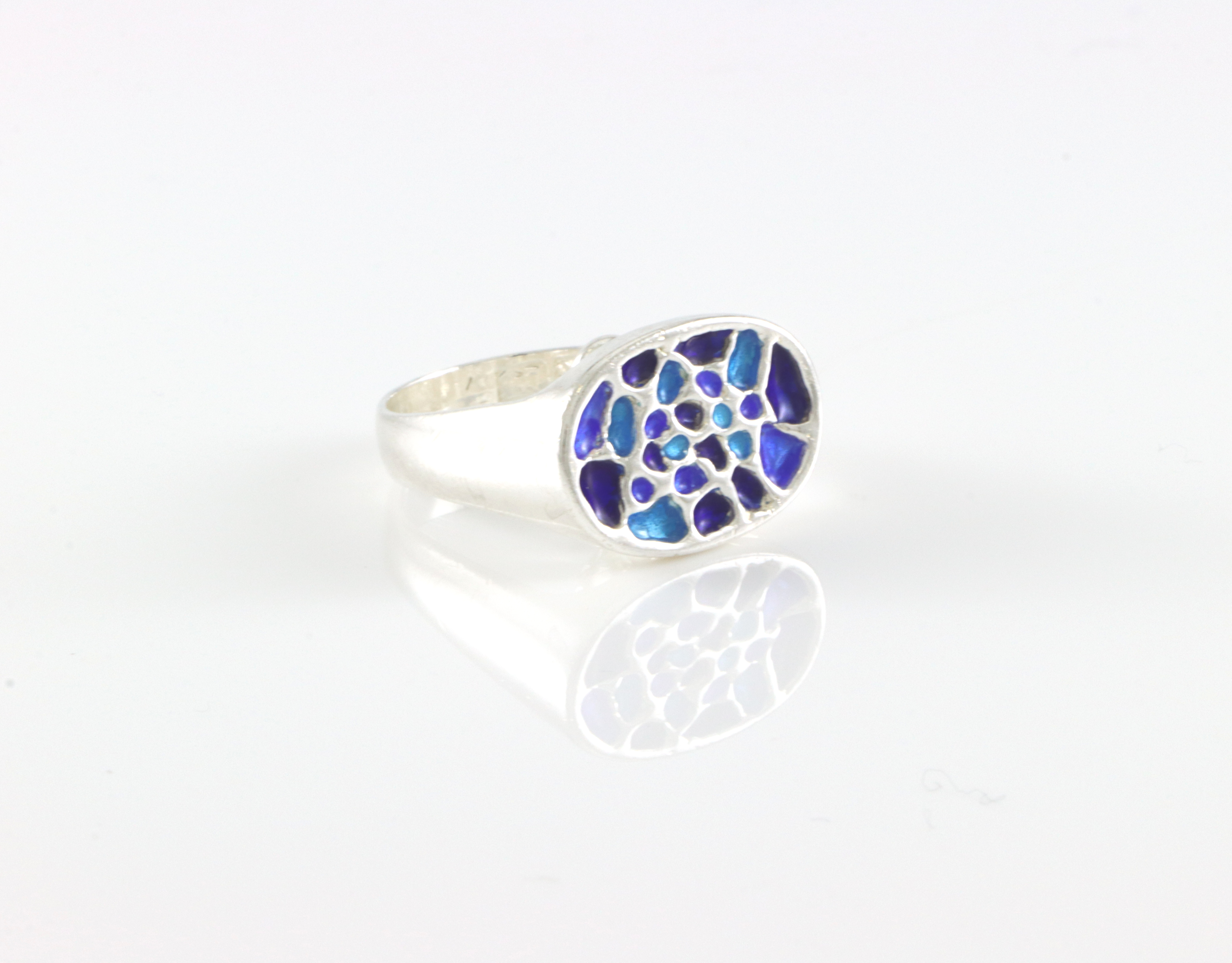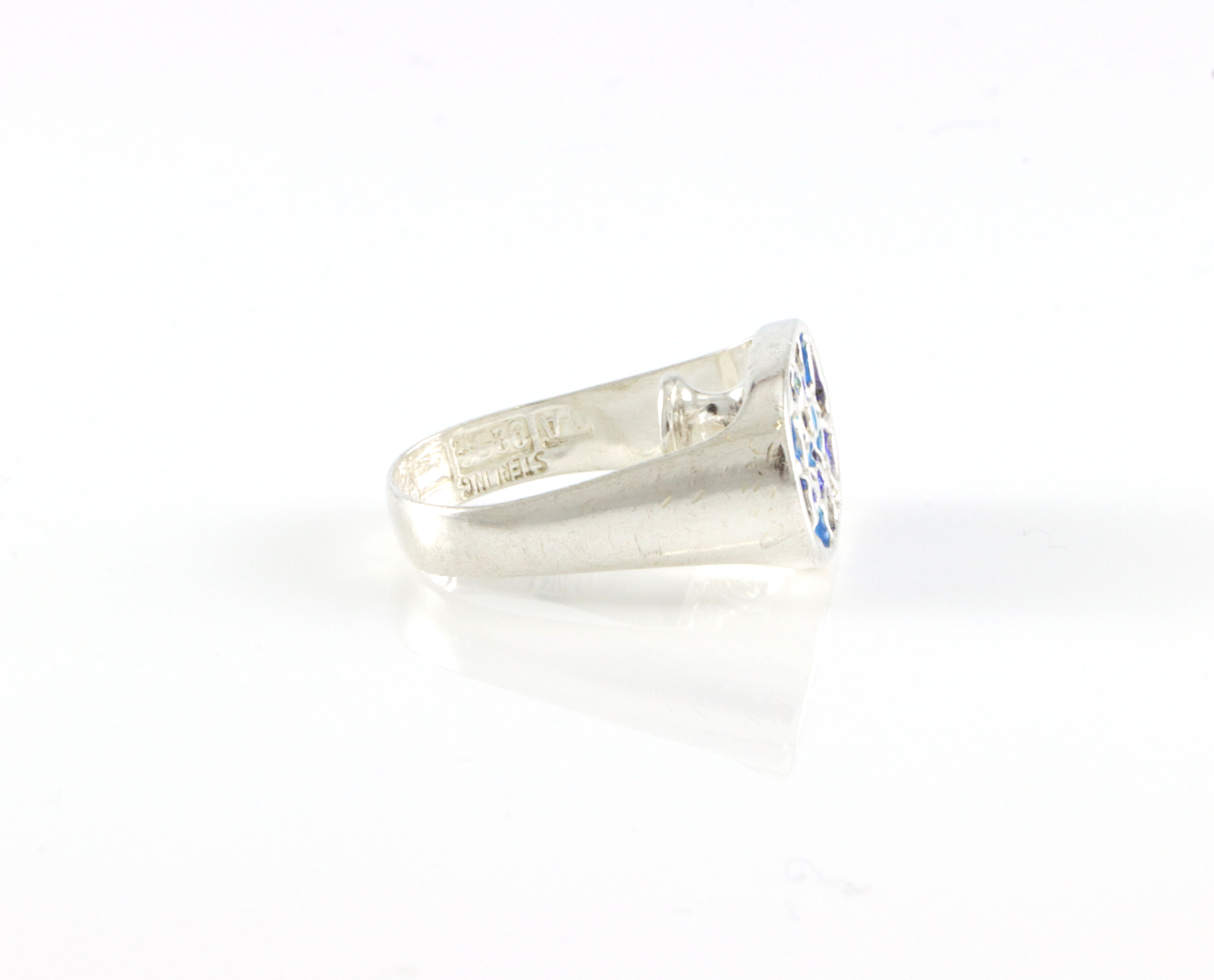 Sjelden ring i 925 sølv og emalje Str krone: 19 x 14 mm Ringstr: 51 I god stand