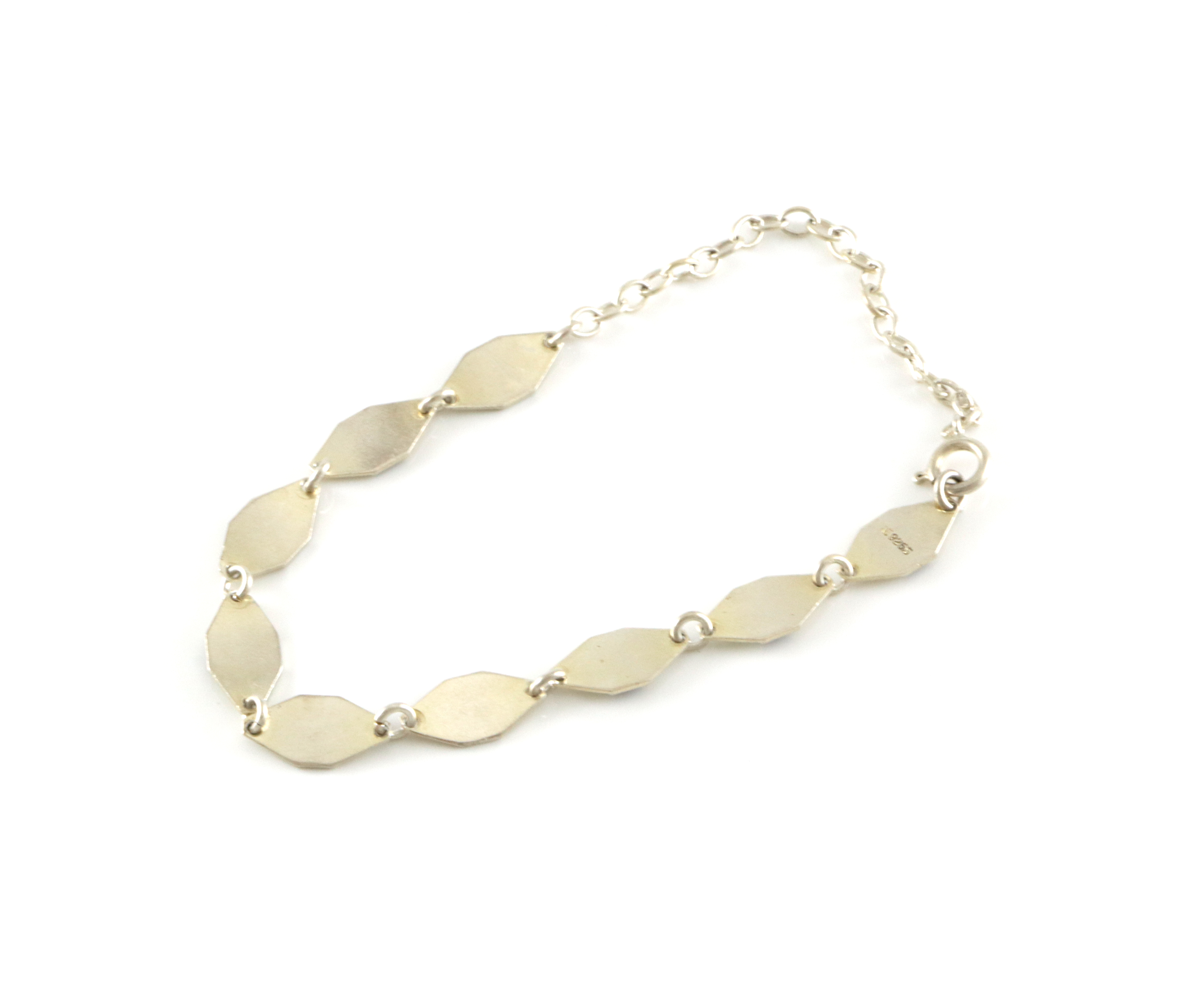 Armlenke i sølv med sort og hvit emalje. Lengde: 22,5 cm (Forlenget med en vanlig sølvlenke. Kan enkelt fjernes) Bredde: 0,7 cm Produsent: NE