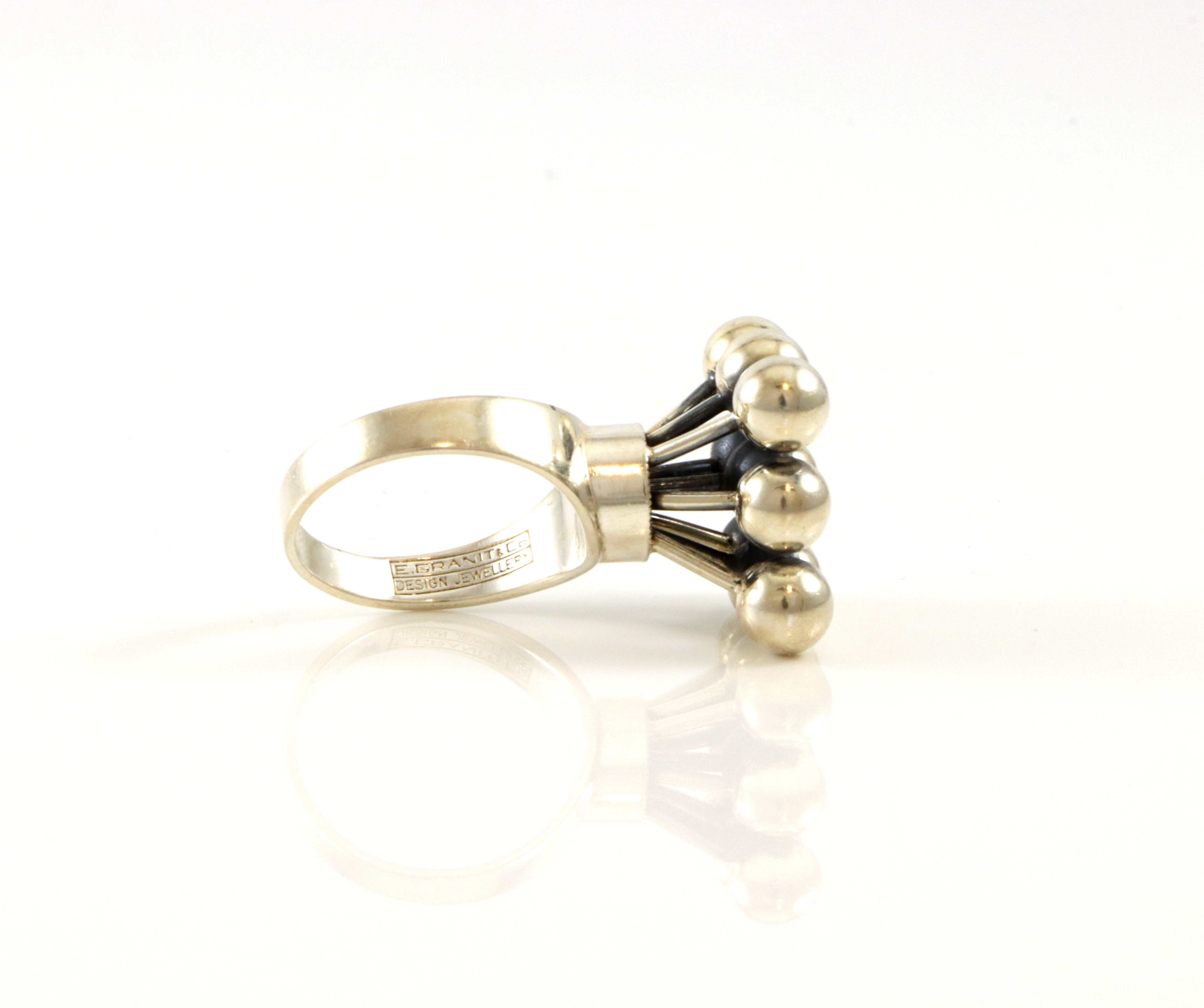 Svært kul ring med høy krone Str krone: 17 x 17 mm Ringstr: 56 Produsent: Erik Granit