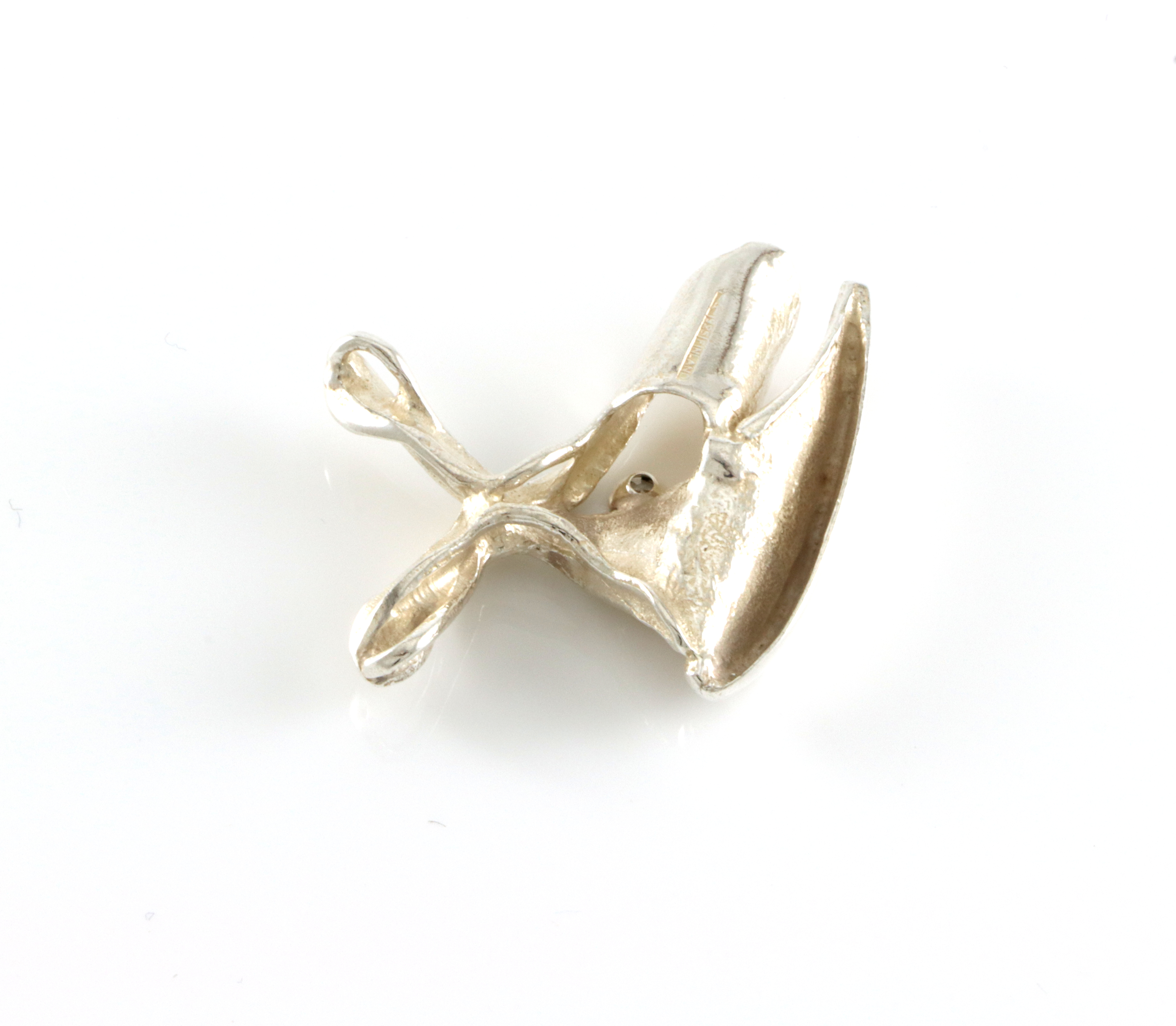 Stemplet Finland og 925 Sølv og et ansvarsmerke som er litt for svakt og vanskelig å tyde Størrelse: 33 x 30 mm Produsent: ?