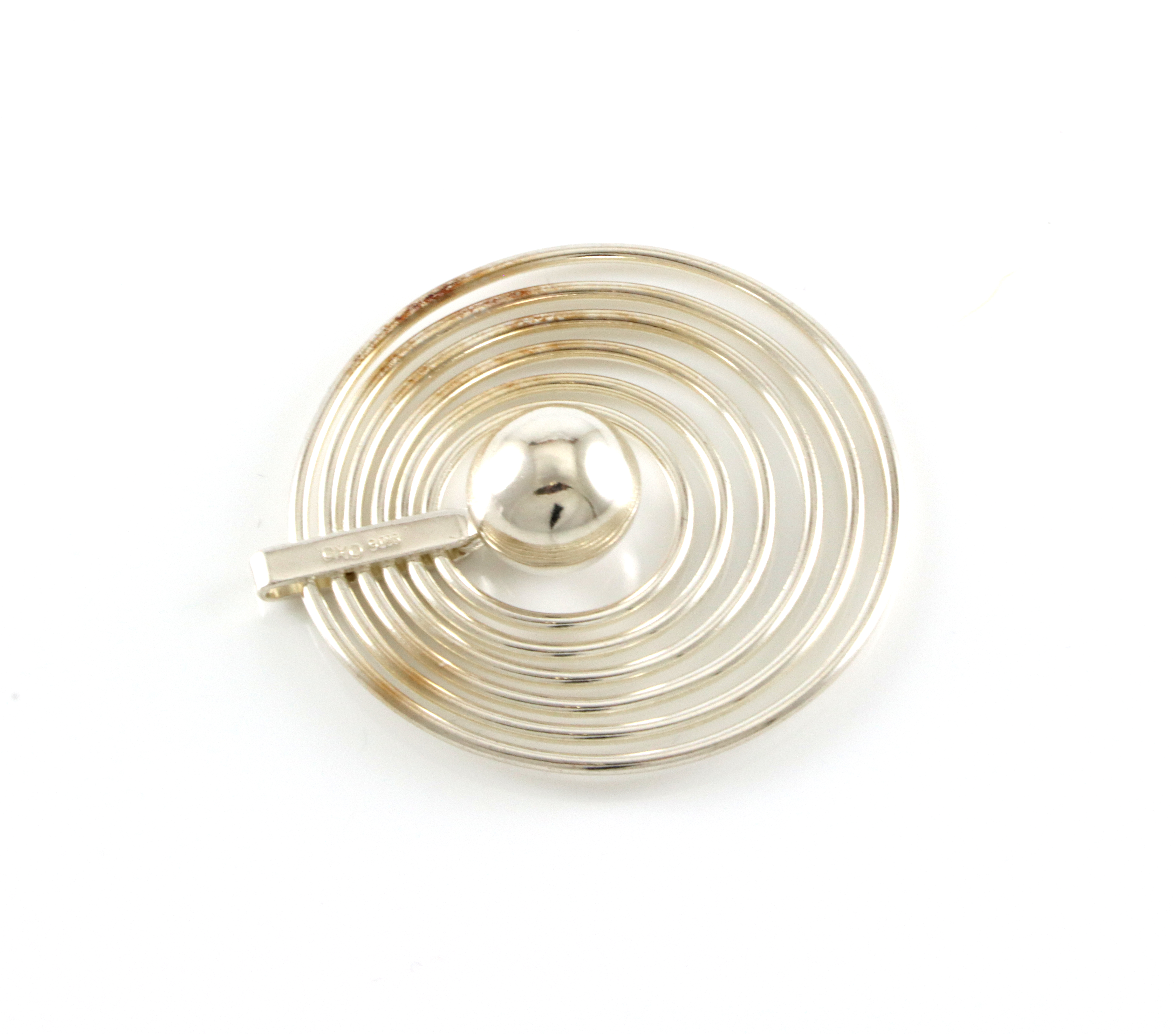 Stilig retroanheng i sølv. Mestermerket OXO (H.C Østrem). Stilig anheng med kule i midten. 4,8 x 4,5 cm