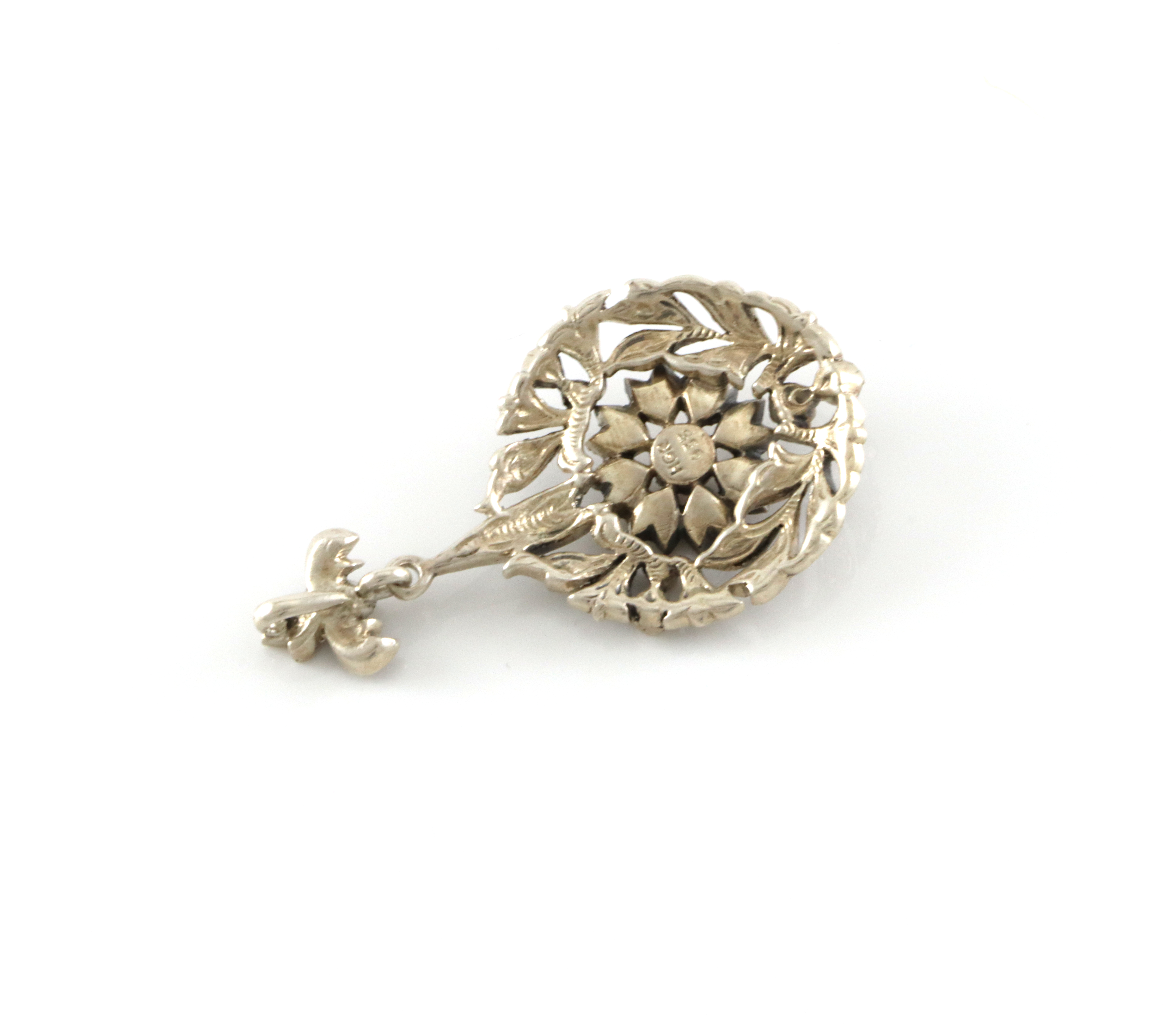 Et helt fantastisk anheng i 935 sølv. Mestermerket HGR. Anhenget er vanvittig likt Victorianske diamantsmykker, fantastisk flott smykke å se på. 4,3 x 2,4 cm