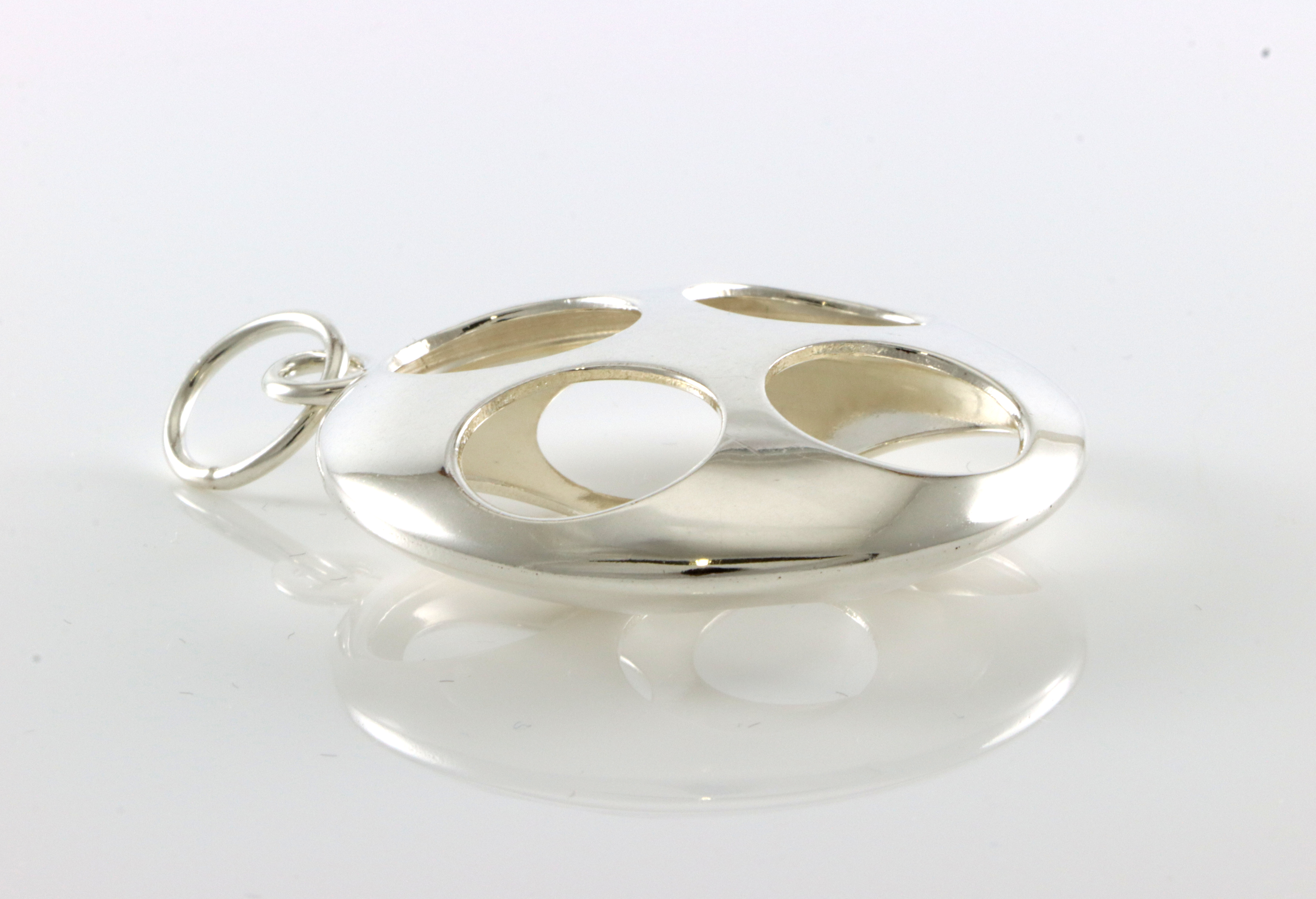 Kult modernistisk anheng med stempler som er litt for utydelige Diameter: 43 mm