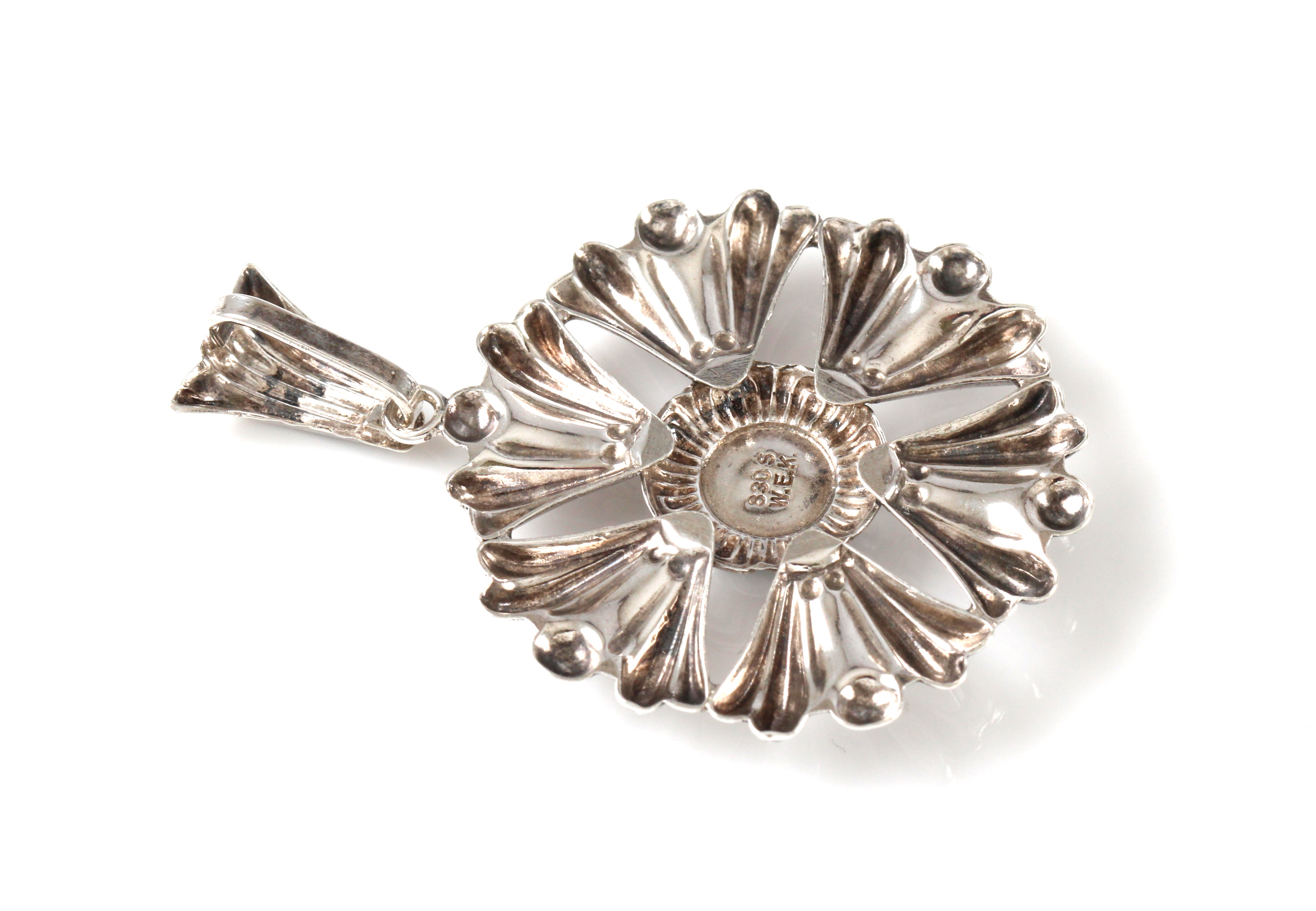 Anheng med det som kan se ut som en turkis. Med mestermerke W.E.K 5,1 x 3,5 cm