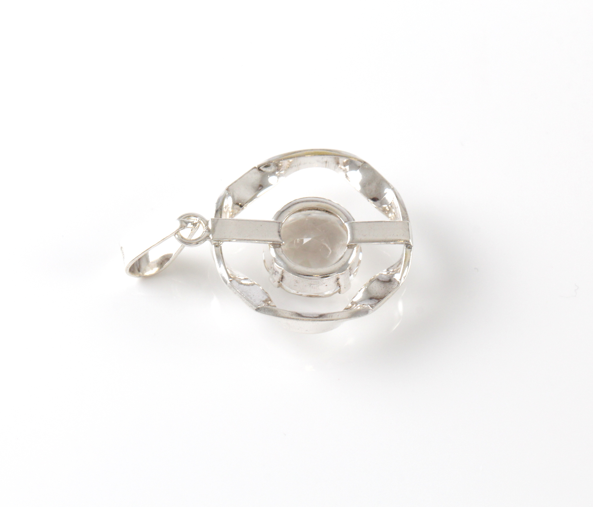 Lite anheng med blank stein produsert av Helge Rasmussen. 3,2 x 2,0 cm