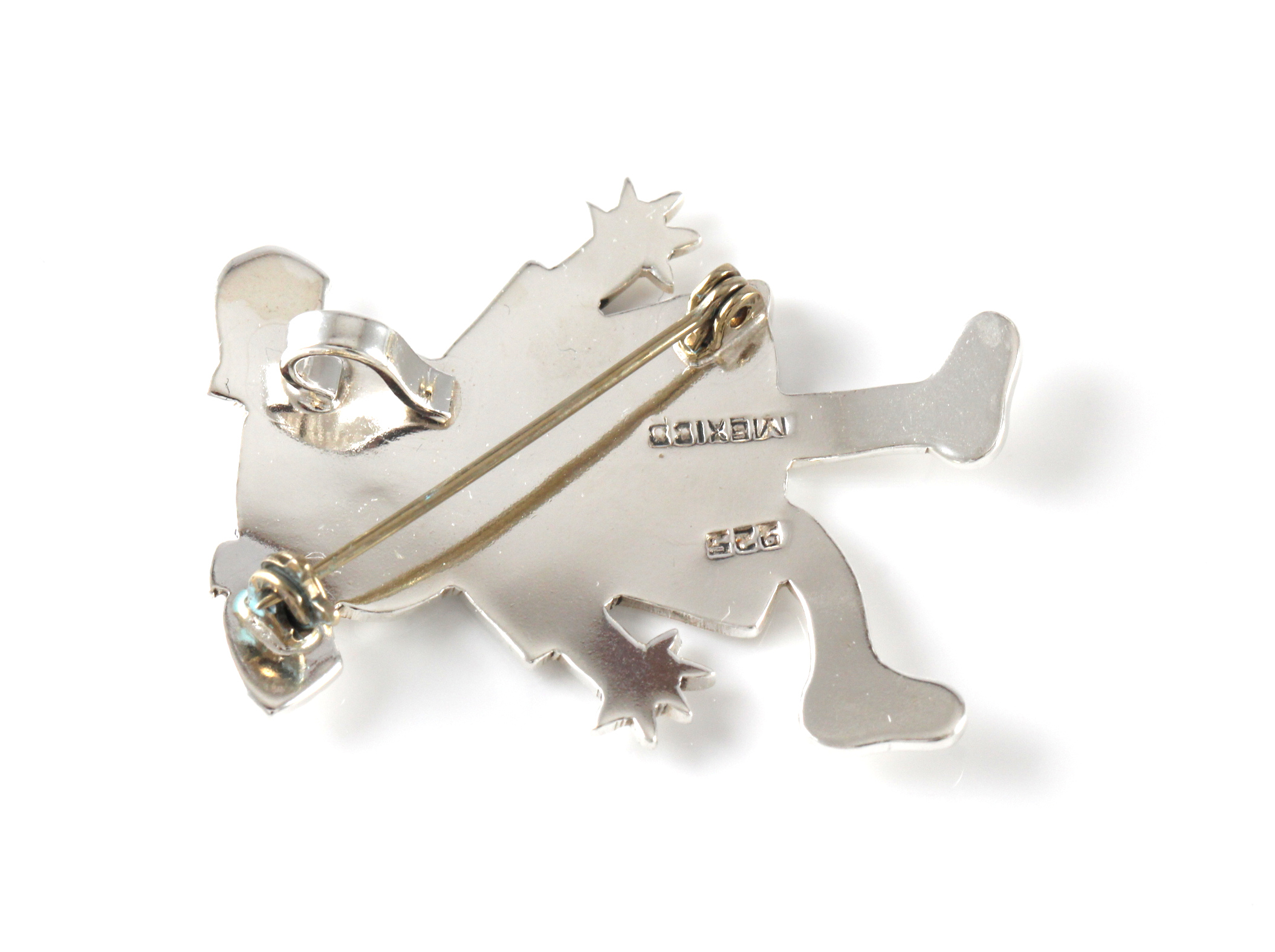 Kombinert anheng og brosje, produsert i Mexico. 3,9 x 3,2 cm