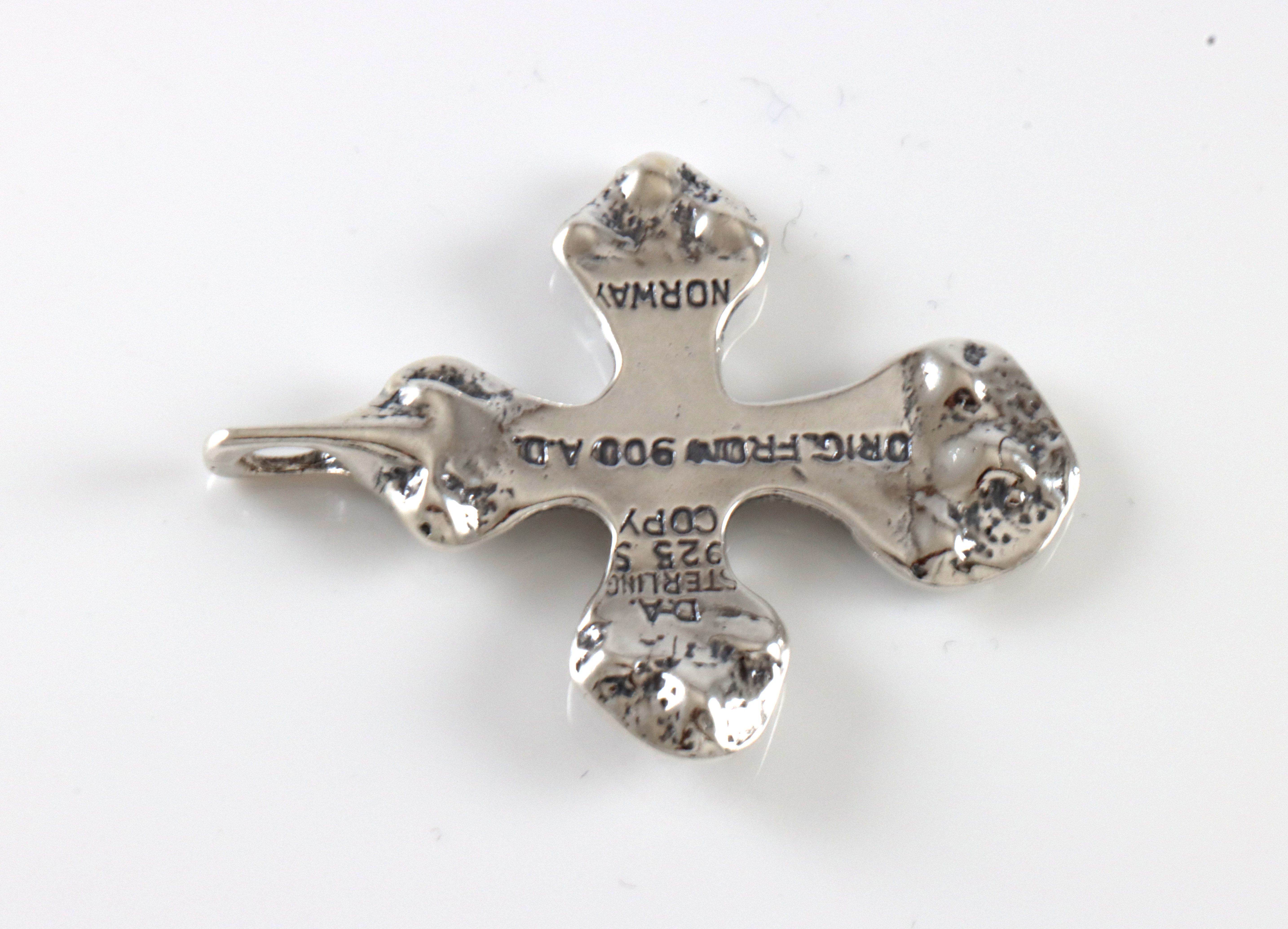 Kors i sølv fra Saga-serien til David-Andersen. 3,6 x 2,7 cm stort.