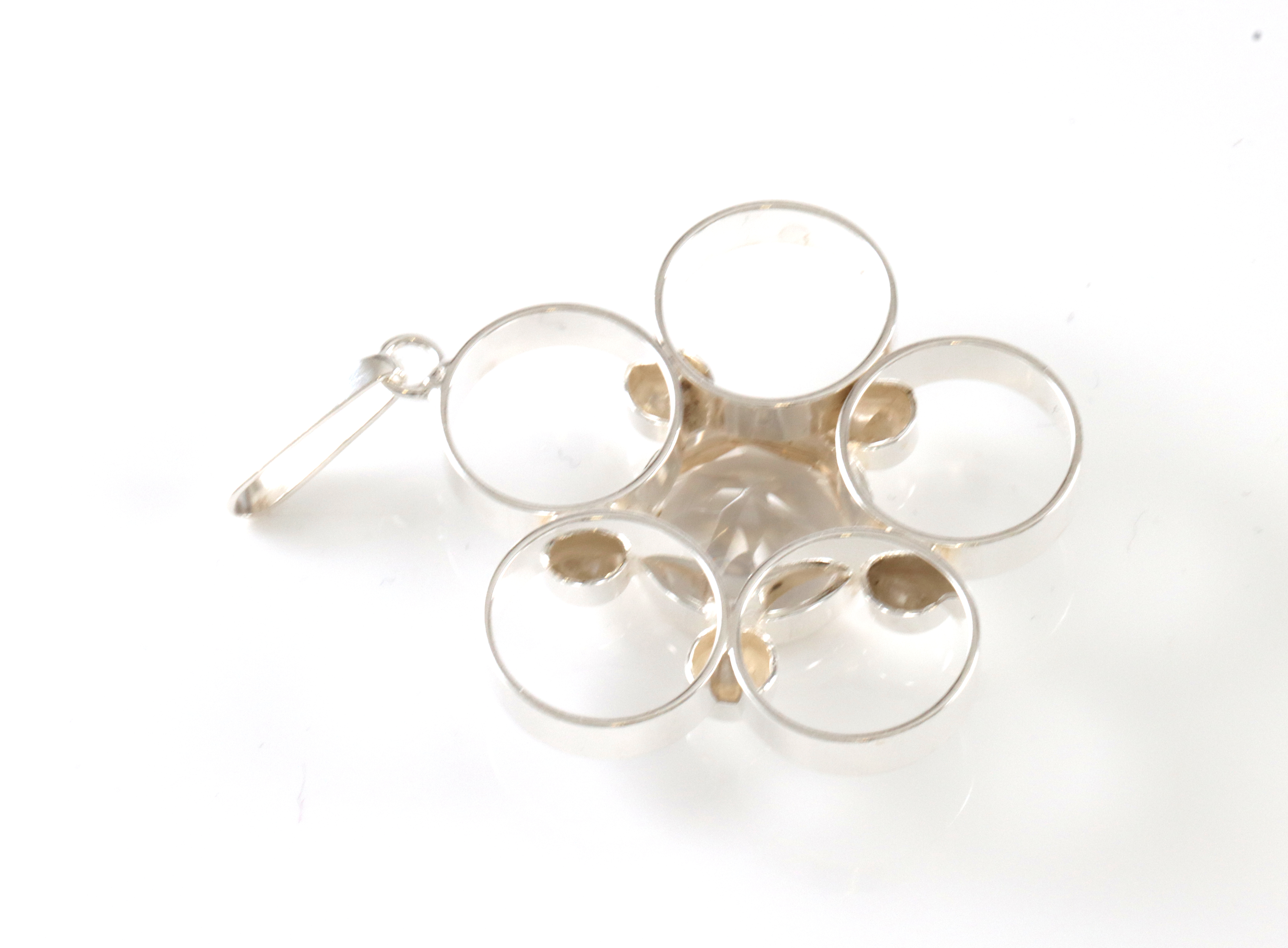 Vare Anheng i sølv med bergkrystall. Produsert av Arne Nordlie. 5,4 x 4,0 cm Arkivbilde
