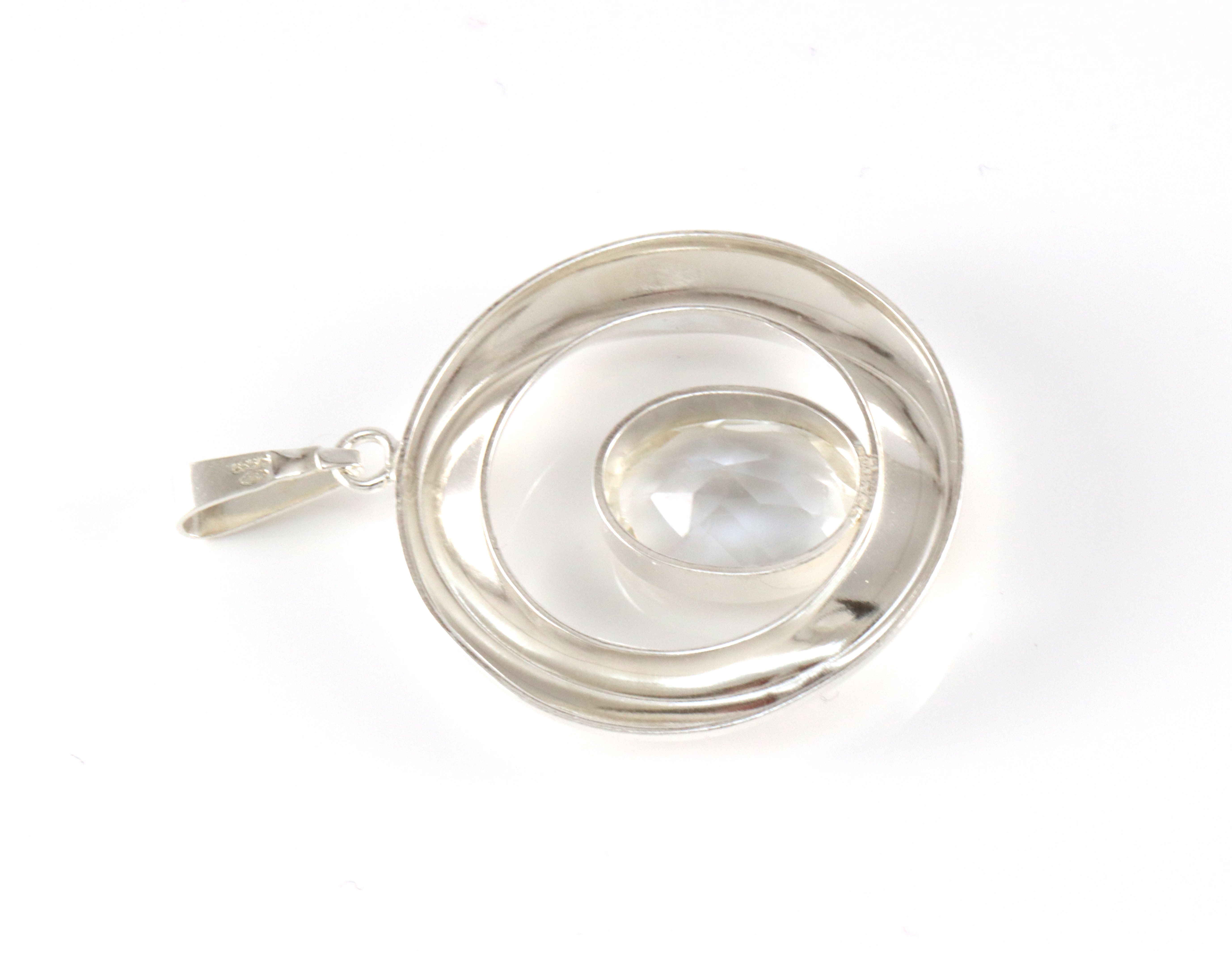 Anheng i sølv med bergkrystall. Nils Elvik sitt mestermerke. 4,8 x 3,4