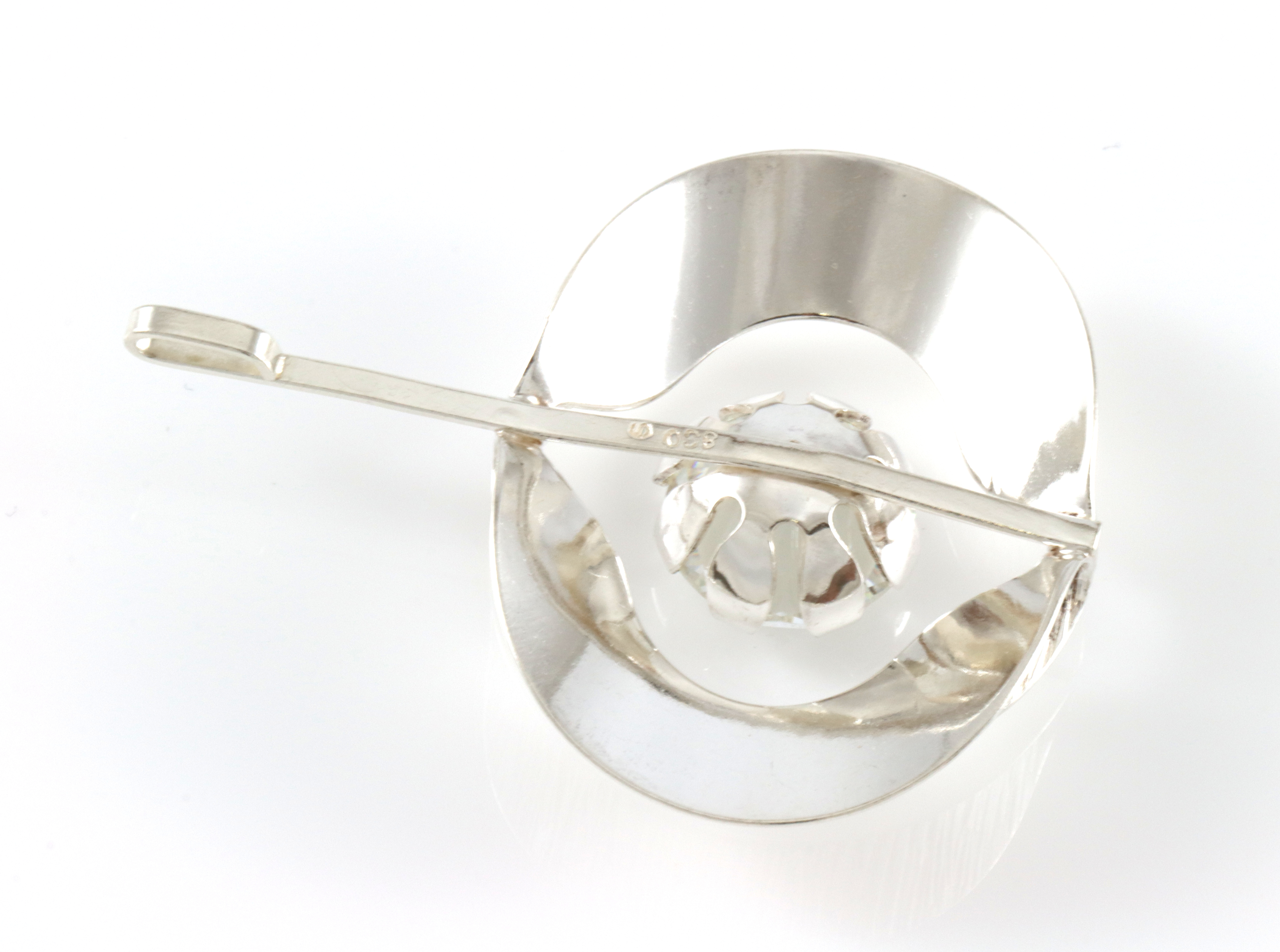 Anheng i sølv med bergkrystall. Ukjent produsent, kun sølvstempel. 5,6 x 4,3 cm