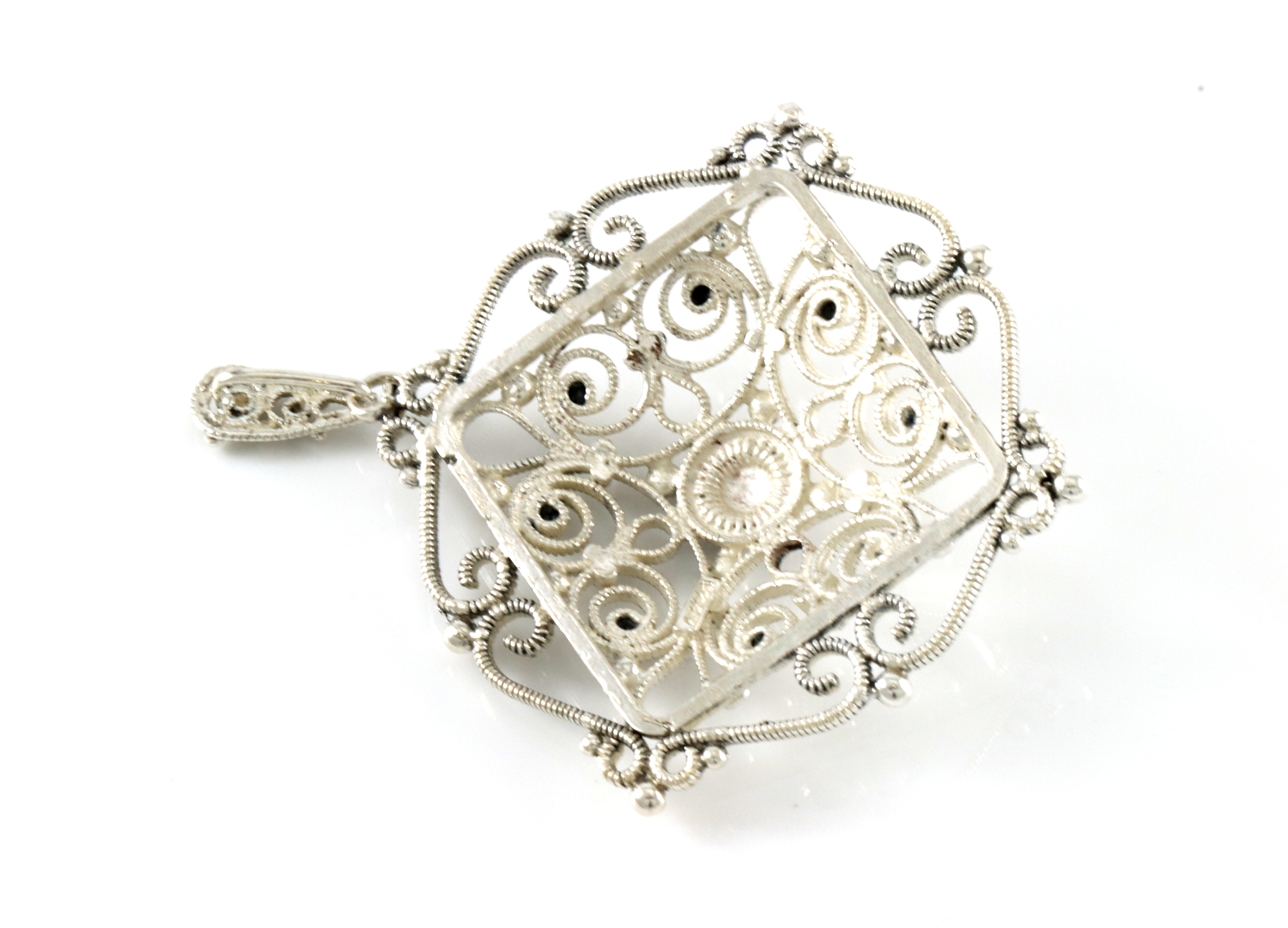 Anheng i sølv, filigransarbeide. Norskprodusert 6,0 x 4,8 cm