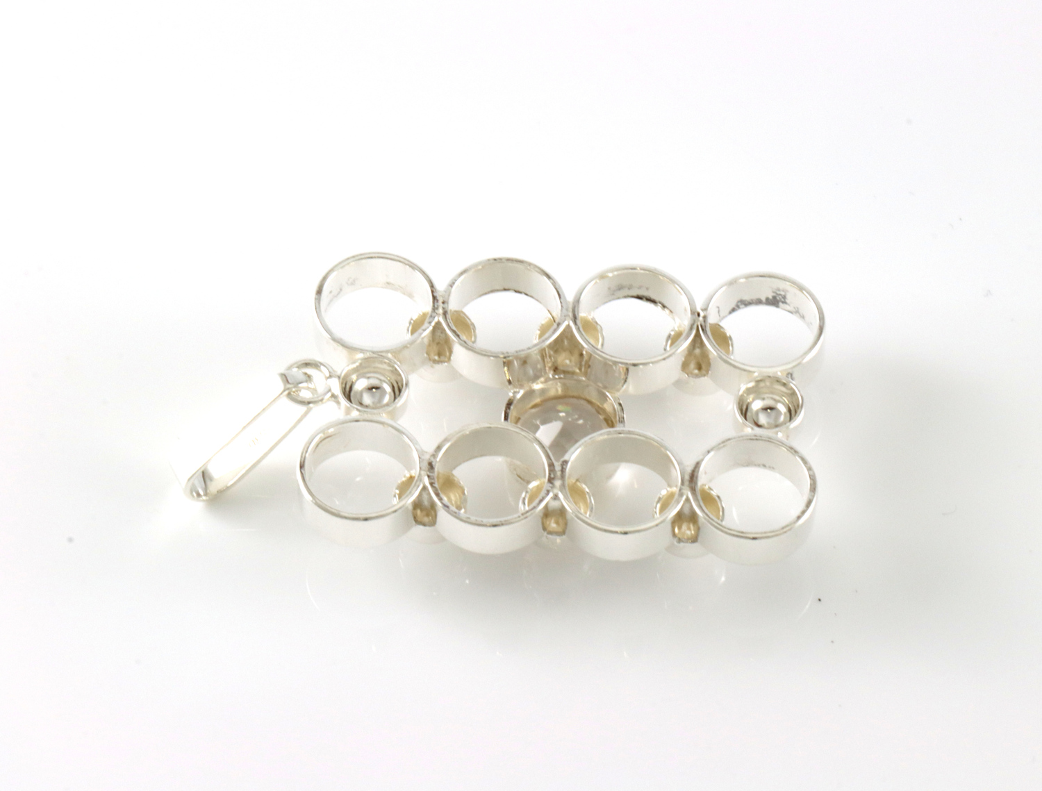 Anheng i sølv med bergkrystall. Produsert av Arne Nordlie. 5,2 x 2,5 cm