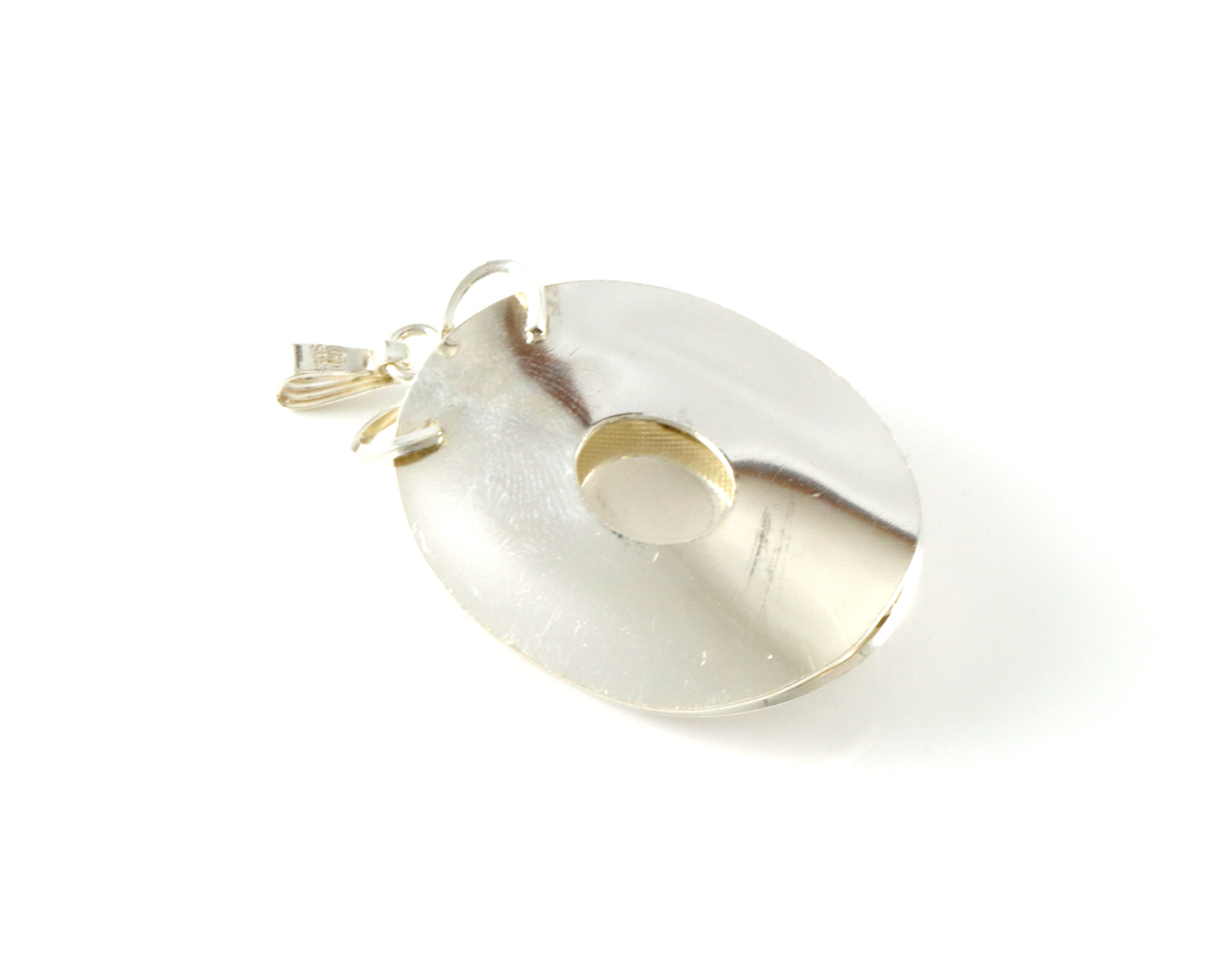 Anheng i sølv med blå stein. Produsert av Ivar T Holth. 4,9 x 2,9 cm