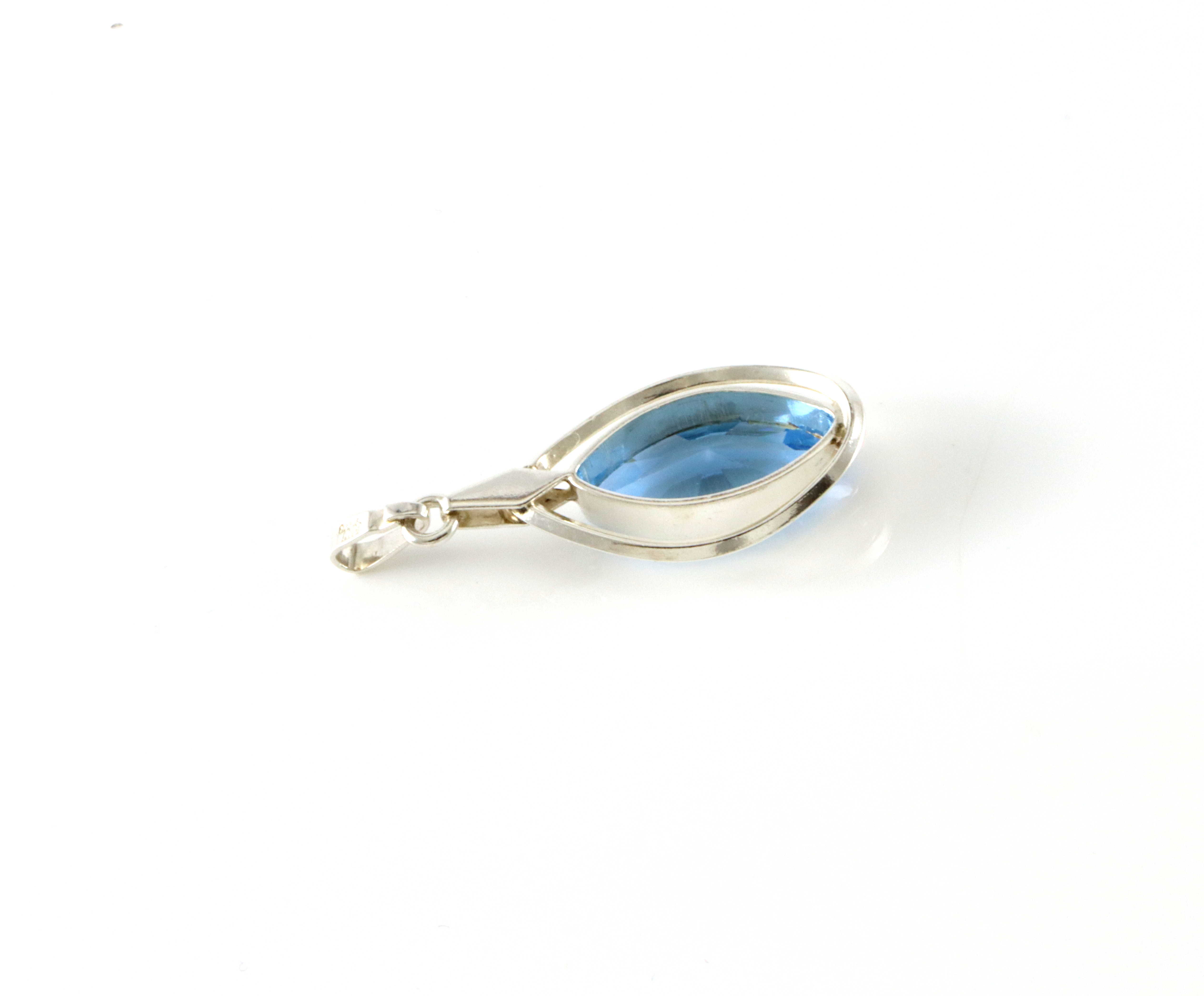 Anheng i sølv med blå stein. Mestermerket Albert Scharning. 3,9 x 2,2 cm