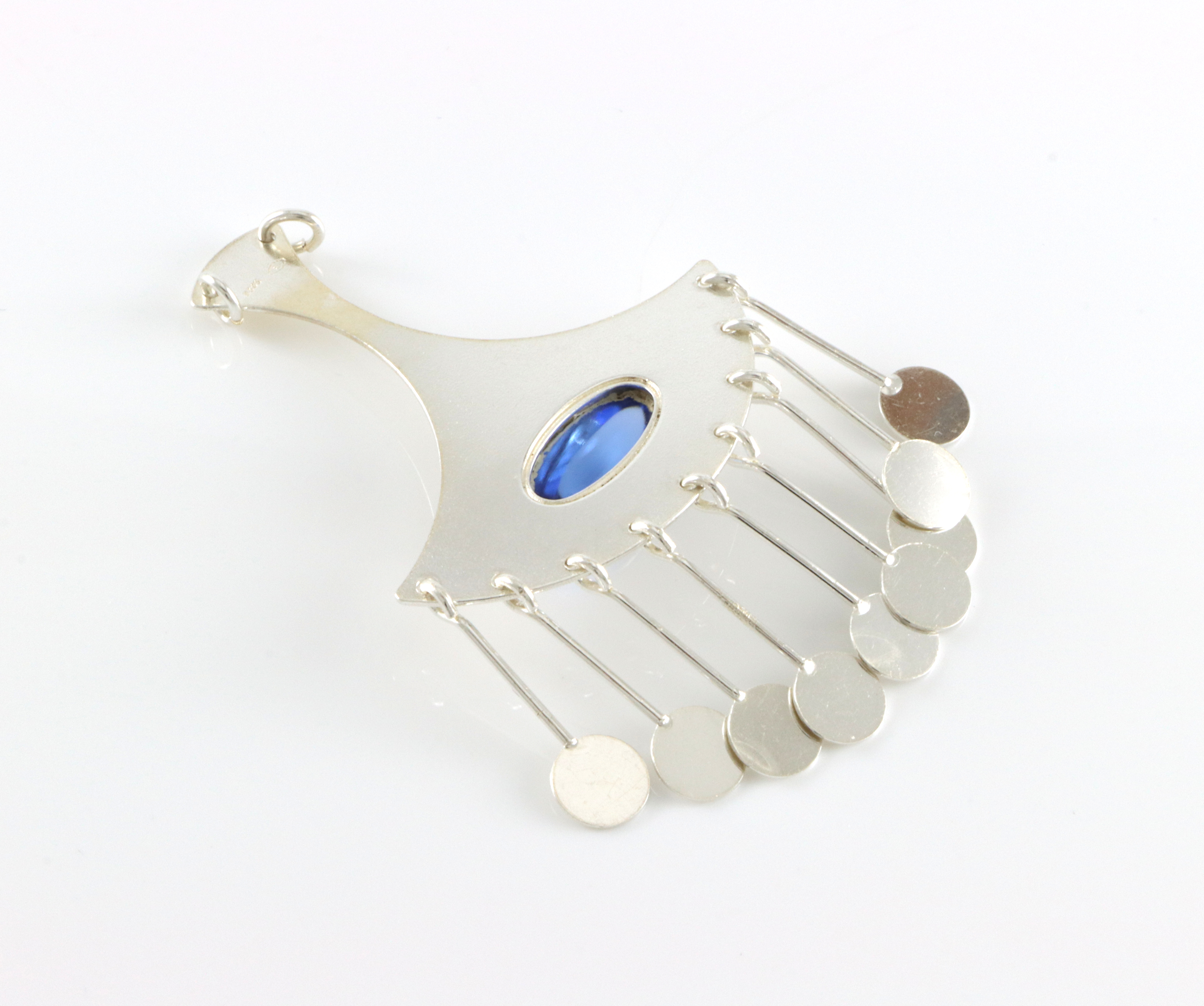 Stemplet Nils Elvik. Anheng i 830 Sølv med blå stein