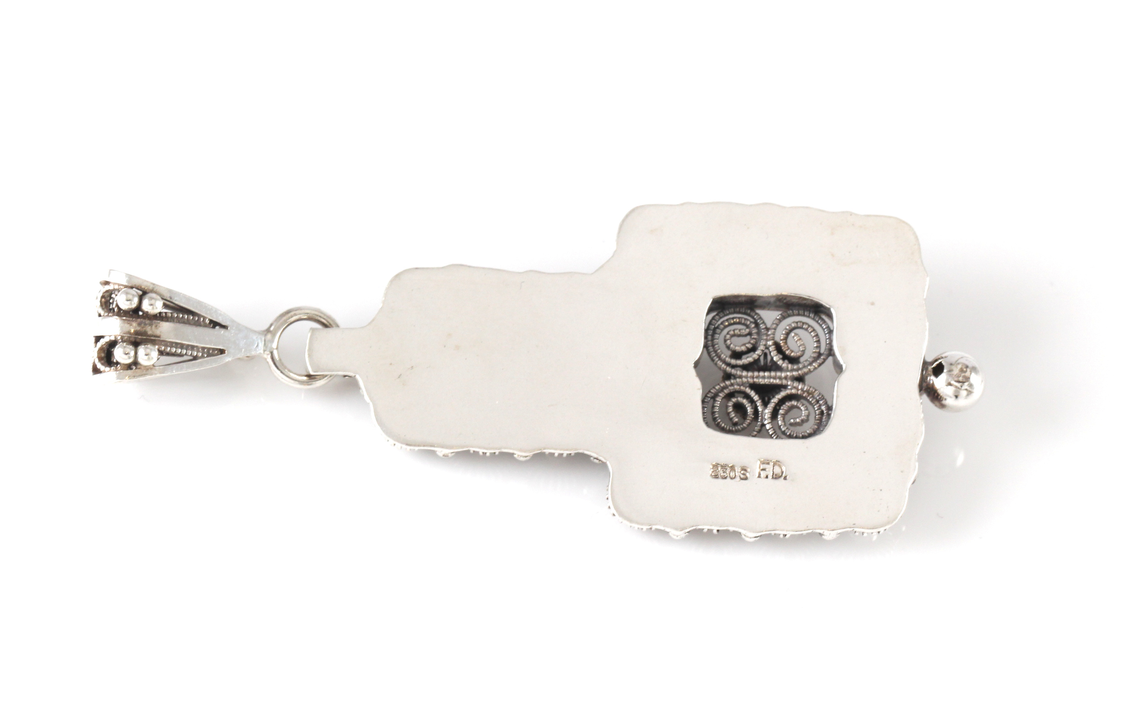 Anheng med filigransdetaljer. Produsert med mesterstempel F.D
