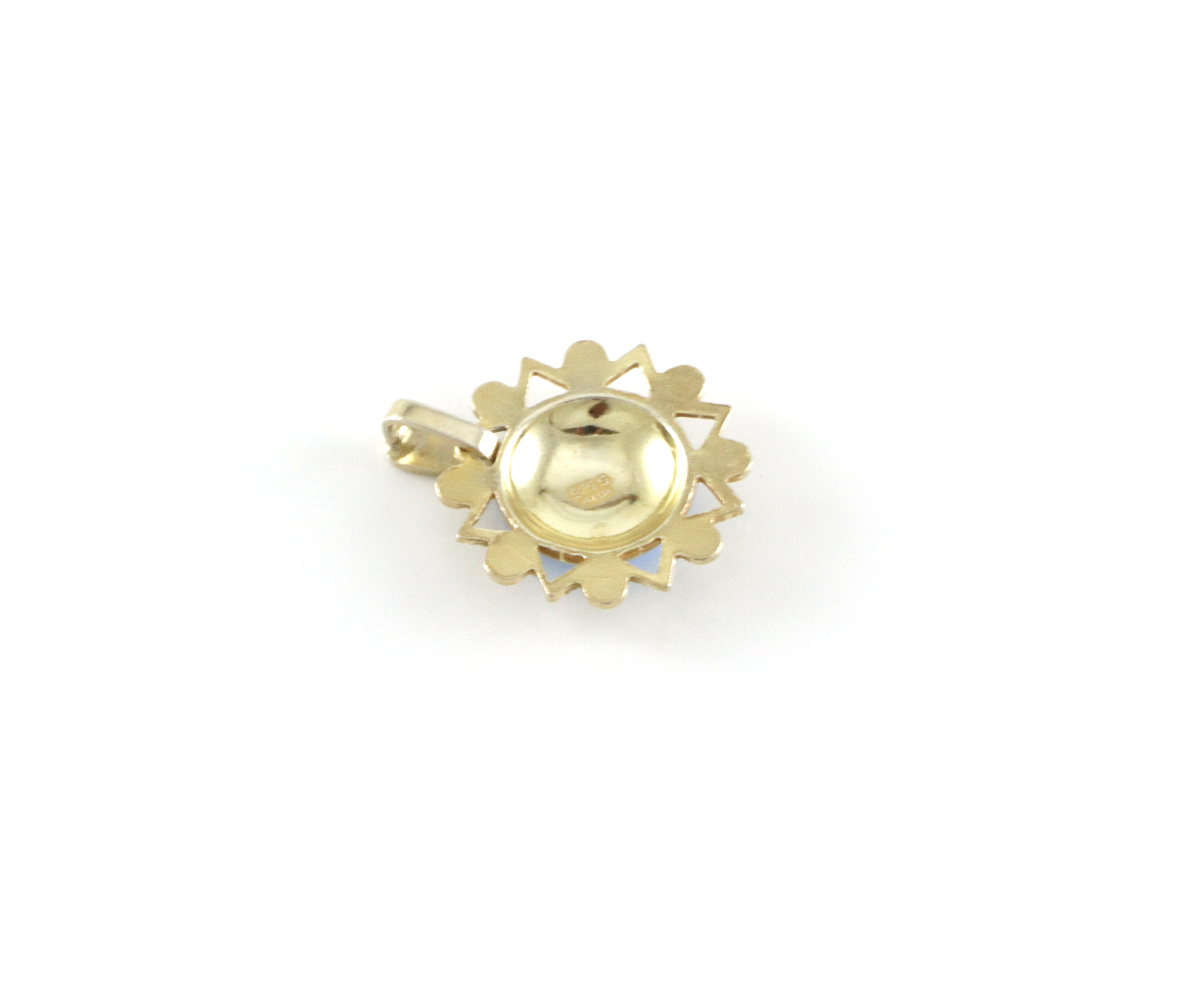 Anheng i forgylt sølv med hvit og blå emalje. Produsert av Arne Nordlie. 3,3 x 1,8 cm