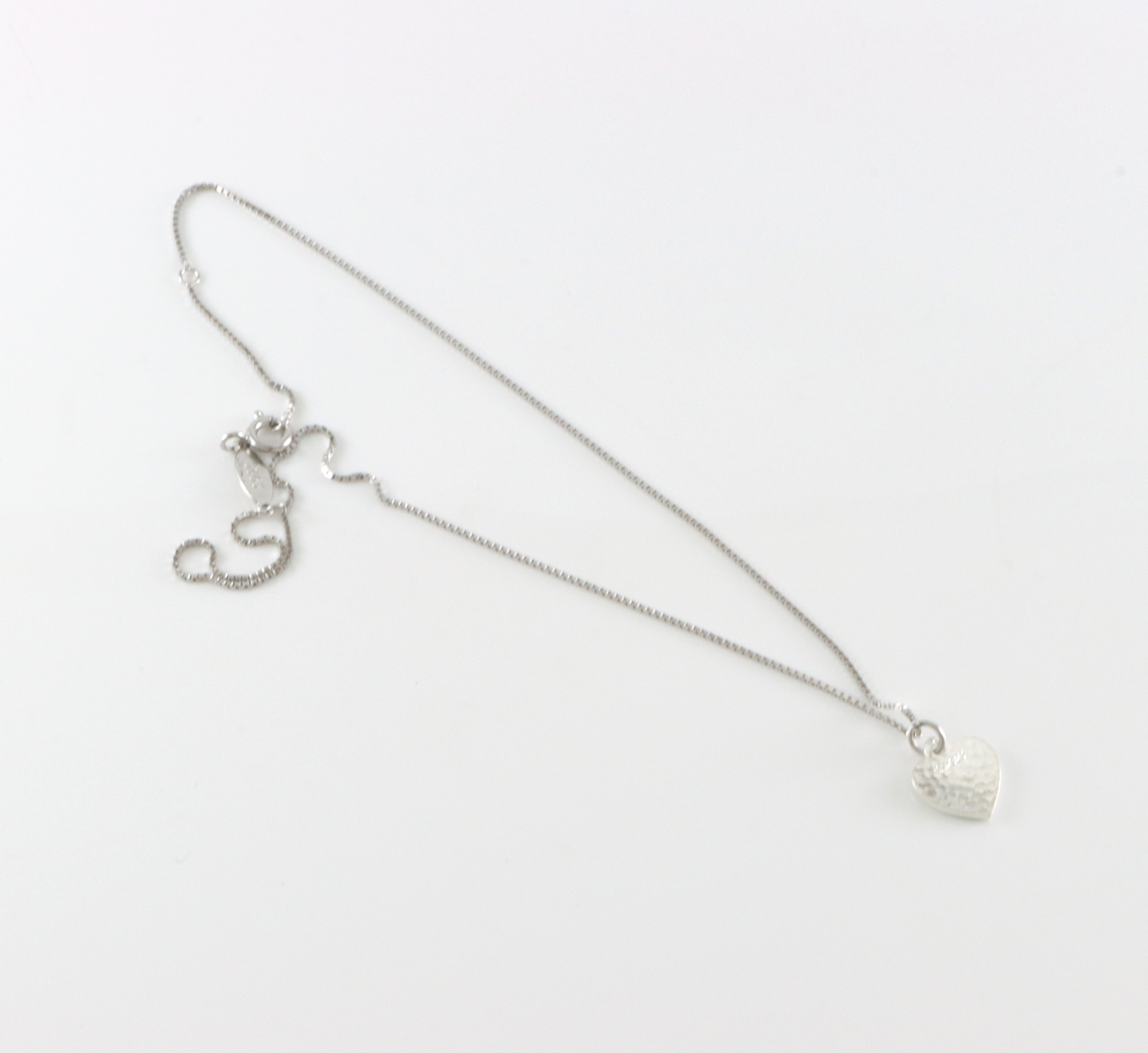 Anheng i sølv med hvit emalje. Produsert av Arne Nordlie 1,5 x 1,6 cm(Kjede på 34/37 cm følger med)
