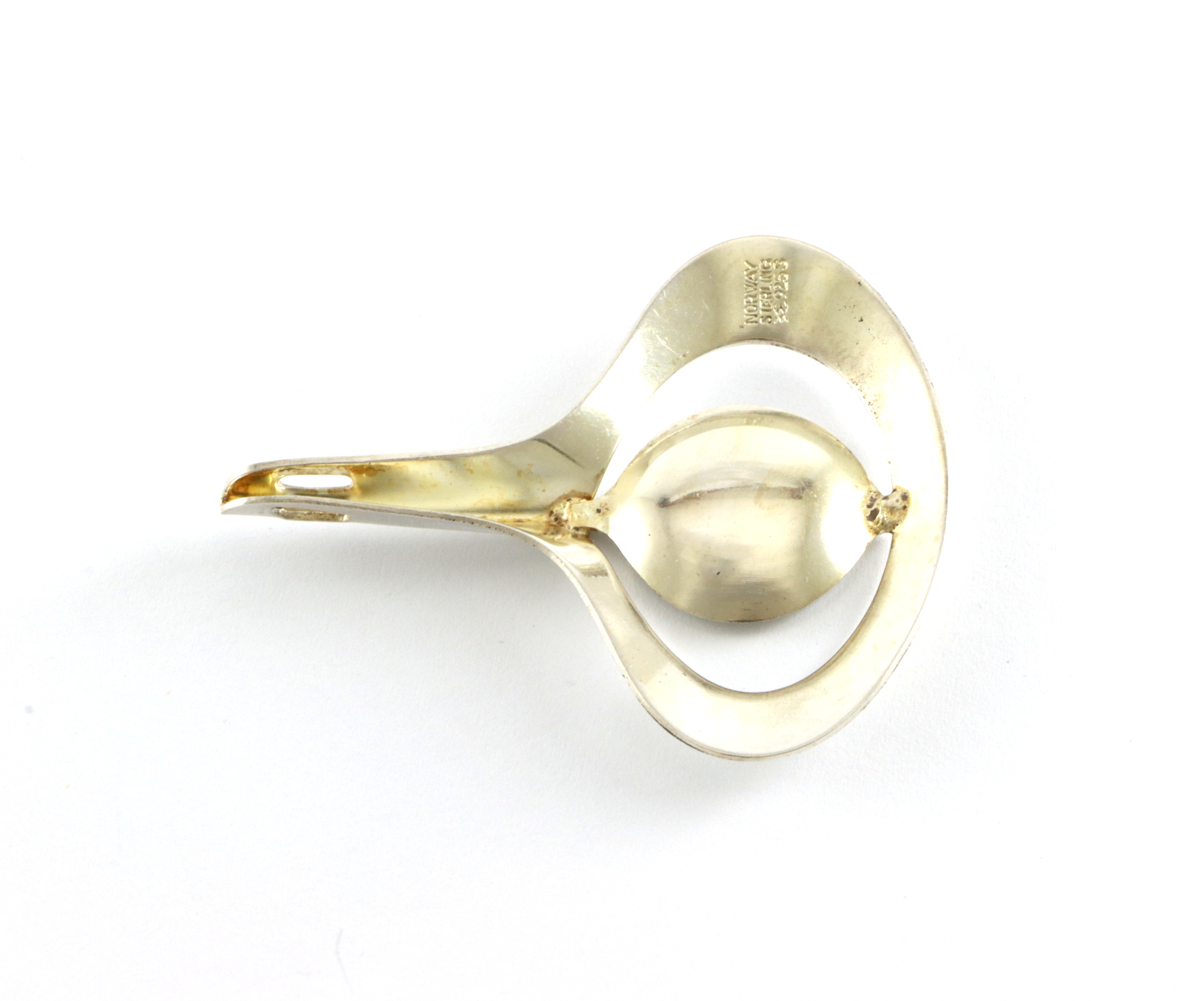 Anheng i sølv med olivengrønn emalje. Produsert av Aksel Holmsen. 5,0 x 4,8 cm I god stand