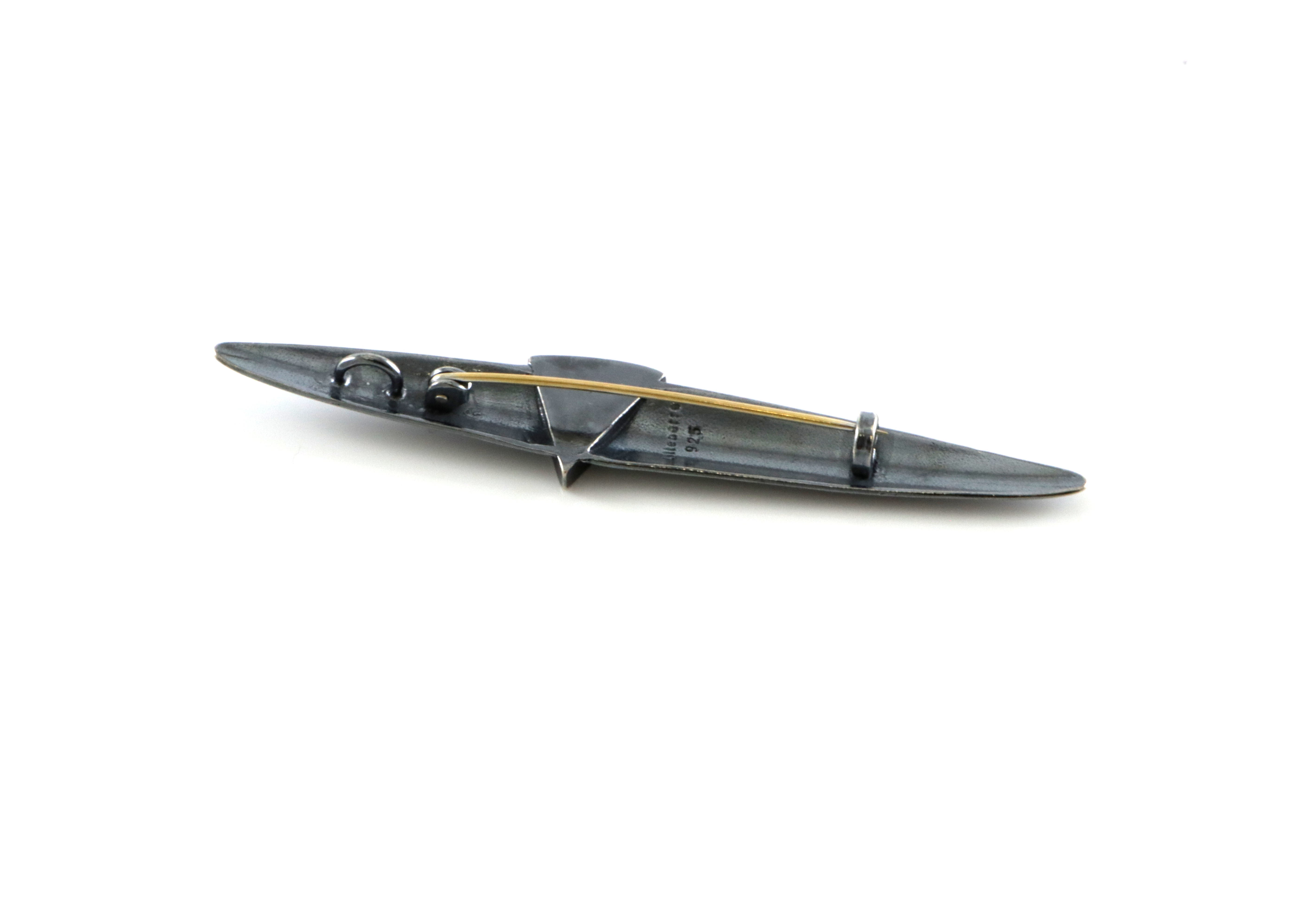 Mari Lilleberre. Kombinert anheng/brosje i 925 oksidert sølv med gul emalje