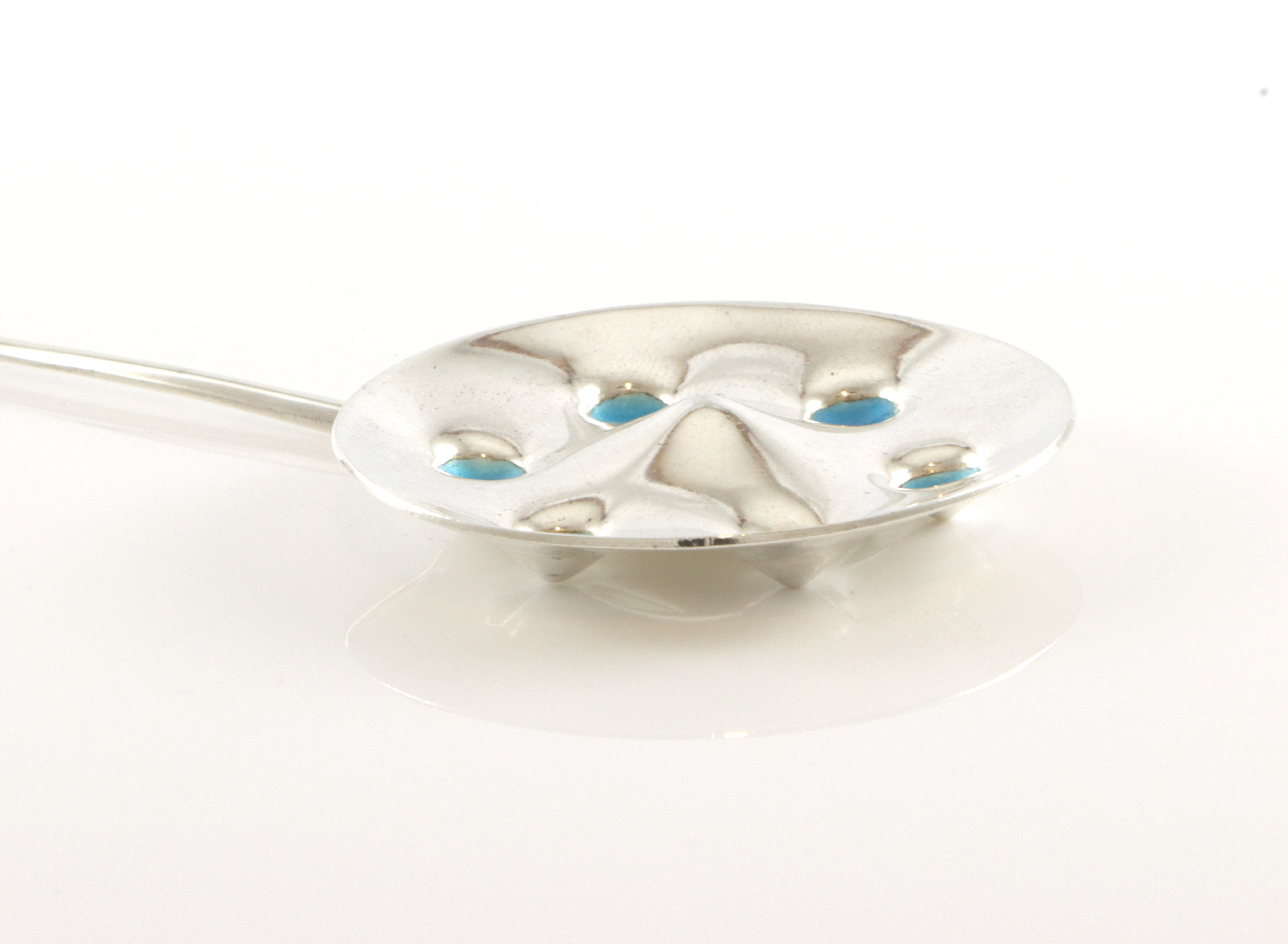 Kult, stort og sjeldent anheng fra Aksel Holmsen med blå emalje Passer både til klave og kjede Str: 12,7 x 4,3 cm I god stand