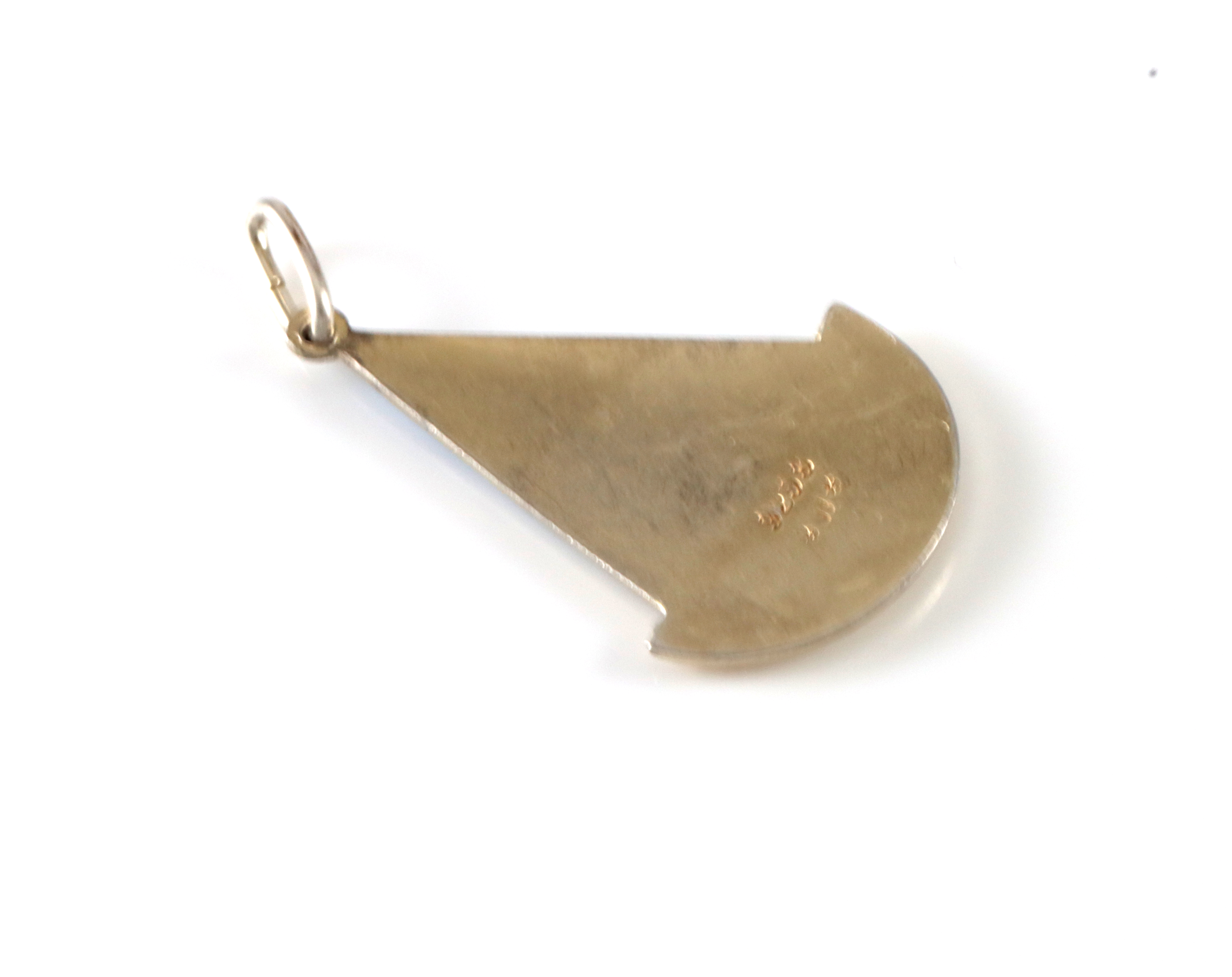 Flott lite anheng i forgyldt sølv og emalje, produsert av Walfjord i Lillestrøm. Motivet er et reinsdyr i naturen. 3,6 cm langt.