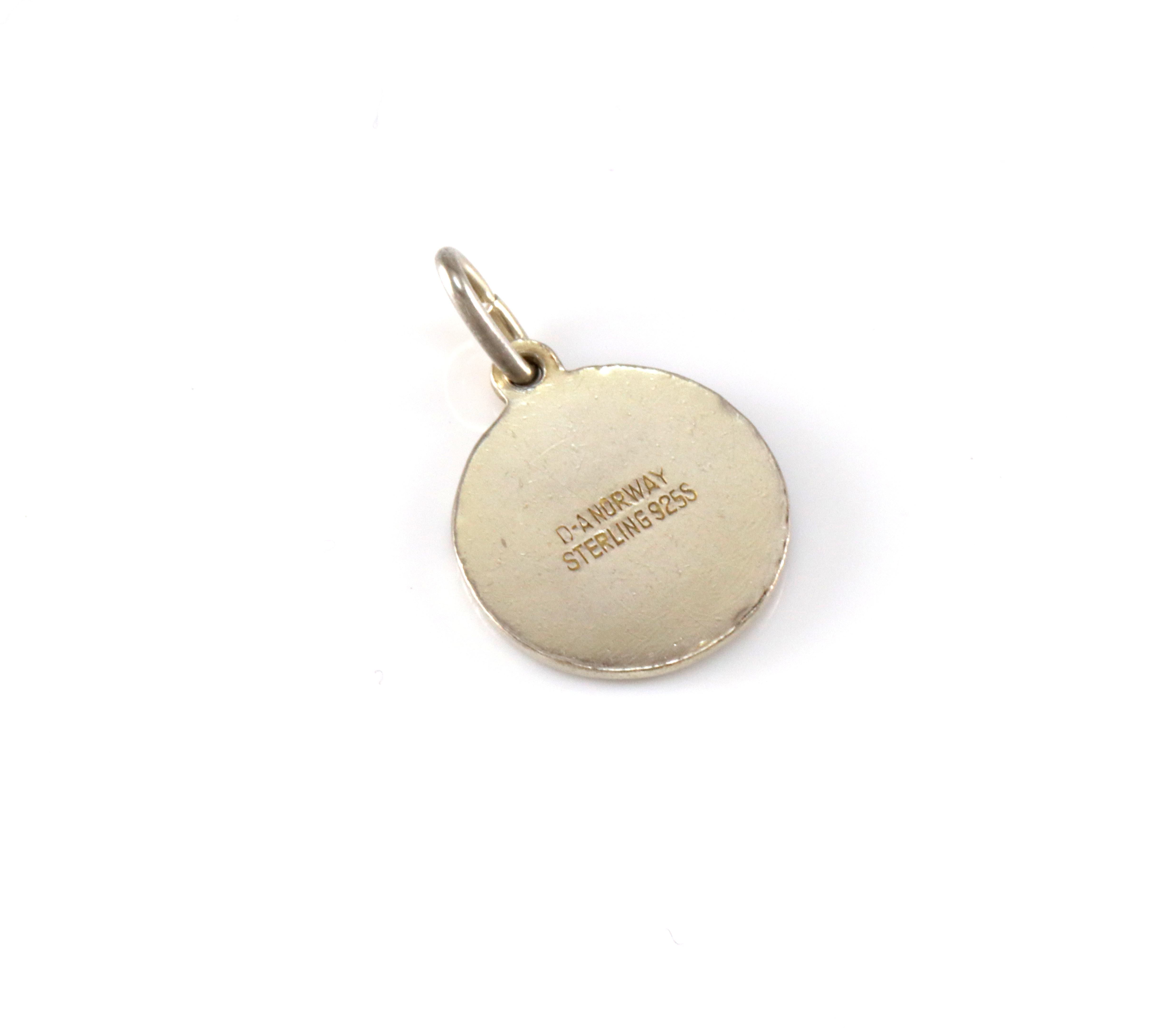 Anheng i forgylt sølv og rød emalje. Stjernetegnet skorpion, produsert av David-Andersen. 1,5 x 1,2 cm
